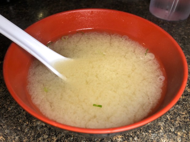 The miso soup was good. At the bottom of the bowl, it had the cubes of tofu that I fancy. It was a solid snack to have before dinner.