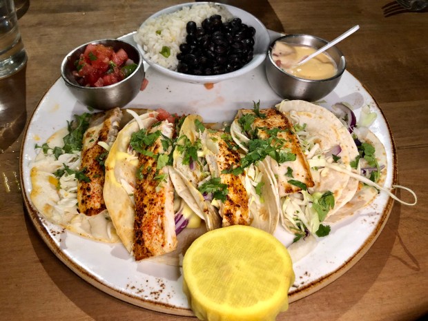 Baja Fish Tacos (Grilled mahi-mahi, slaw, chipotle aioli)