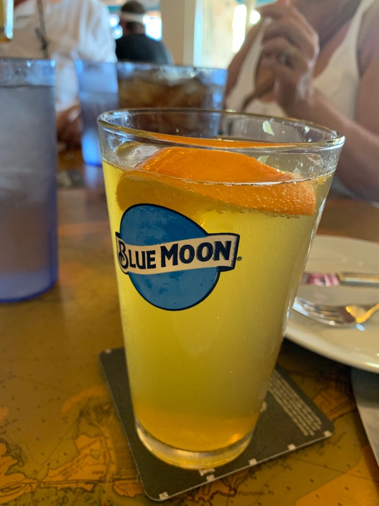 After finally sitting and meeting our server (the staff appeared to be going crazy), we ordered some beers. I’m not sure exactly what beer I had – it was something on draft that was similar to a Blue Moon (peep the Blue Moon glass).