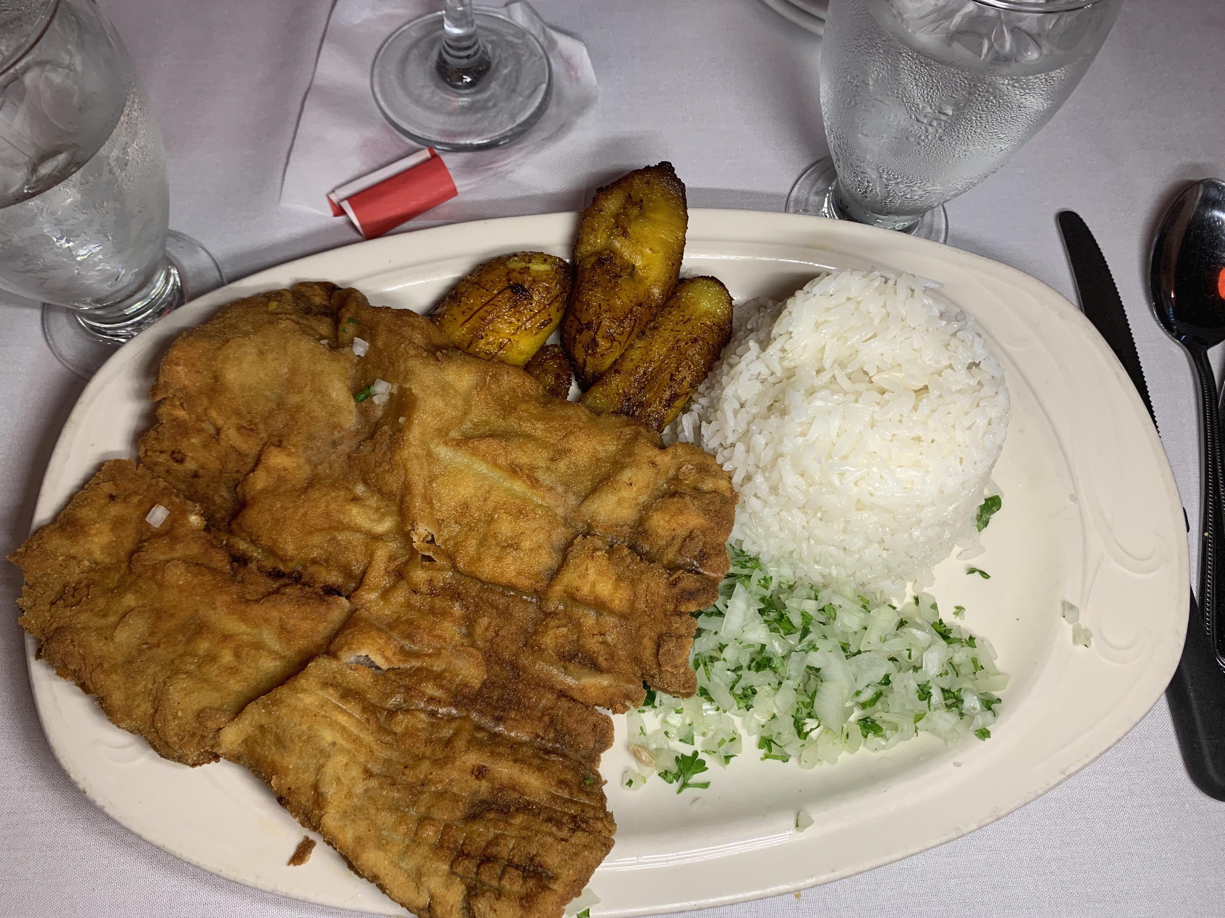For once, everyone loved his or her dishes. Typically when we go to a Cuban restaurant, we find something to complain about (i.e. the steak was cooked wrong, the breading falls off the meat, the chicken is dry, the tostones are soggy, etc.). This time, we were all content. My Dad loved his Churrasco (Skirt Steak); my Mom enjoyed her Bistec Empanizado (Breaded Steak) a fair amount considering it was not made at home; my Sister devoured her Pollo a la Milanesa (Chicken Milanese). For those of you who love tostones, Las Vegas makes their own and they are great (thin & crunchy).