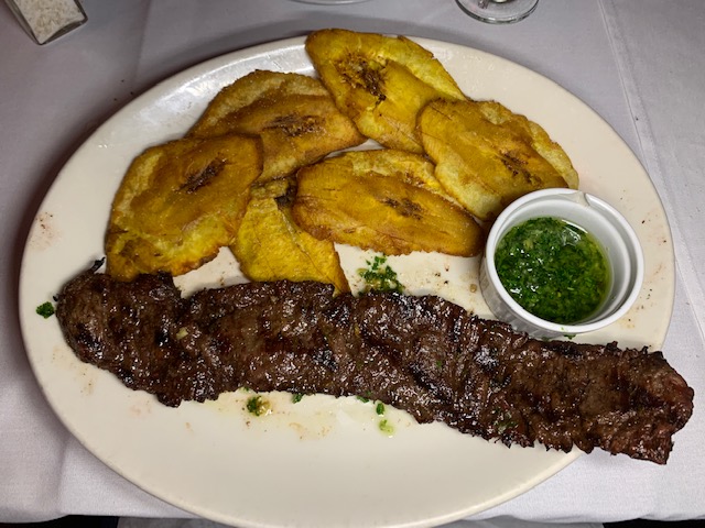 As a starter, we ordered mariquitas (green plantains) and they were nice and crunchy. The garlic mixture sauce (used for dipping) was perfect! The consistency and taste paired well with the crispy green plantain chips.