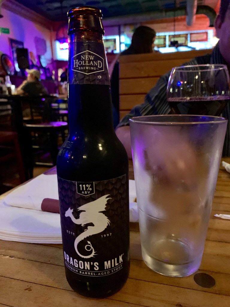 MoonCricket Grille is a chill spot with burgers, bar food, live music, and a HUGE beer selection. None of the draft beers caught my attention and I felt like taking a risk, so I tried a beer I have never tried before – Dragon’s Milk. In honor of my girl, Daenerys Targaryen, I felt obliged to give this stout a shot. Honestly, I liked it – it reminded me of a Guinness. For dinner, I had one of my guilty pleasures – a Reuben. It hit the spot and the fries were awesome.