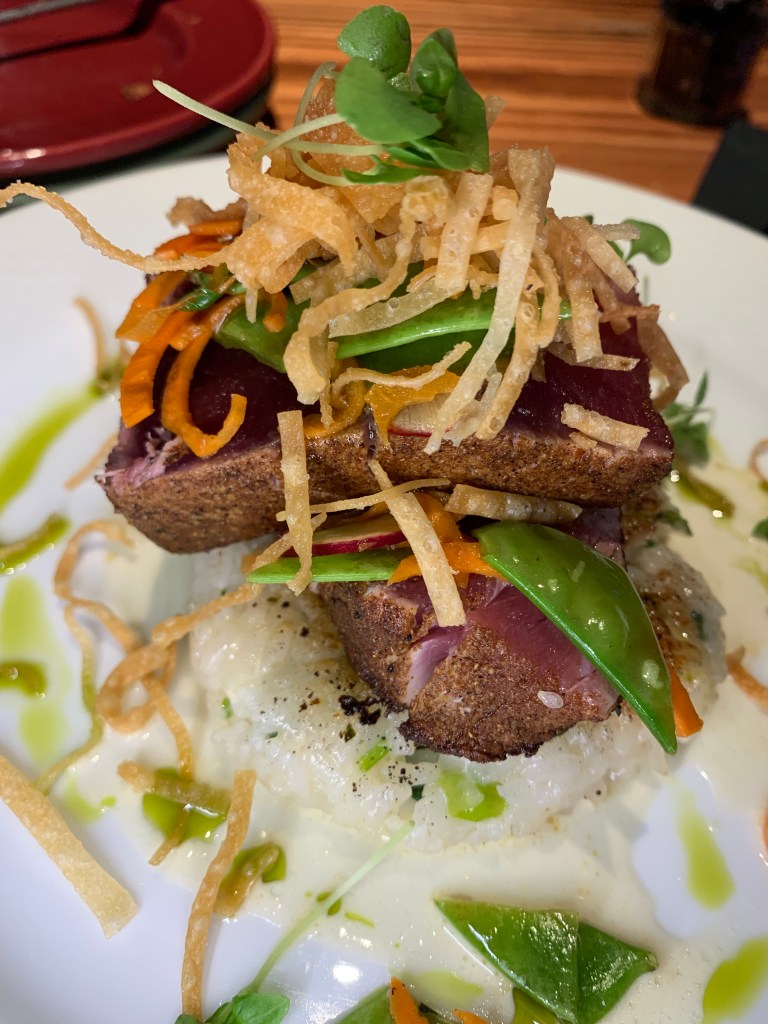 A bartender from Rikki Tiki Tavern recommended this restaurant and I am glad she did – Rising Tide did not disappoint. I loved my drink (Straw-Basil Mule) and my dish (Ahi Tuna). The appetizers were also both delicious, as well (mussels and calamari). All of the flavors and spices were spectacular – I practically licked all of the plates.