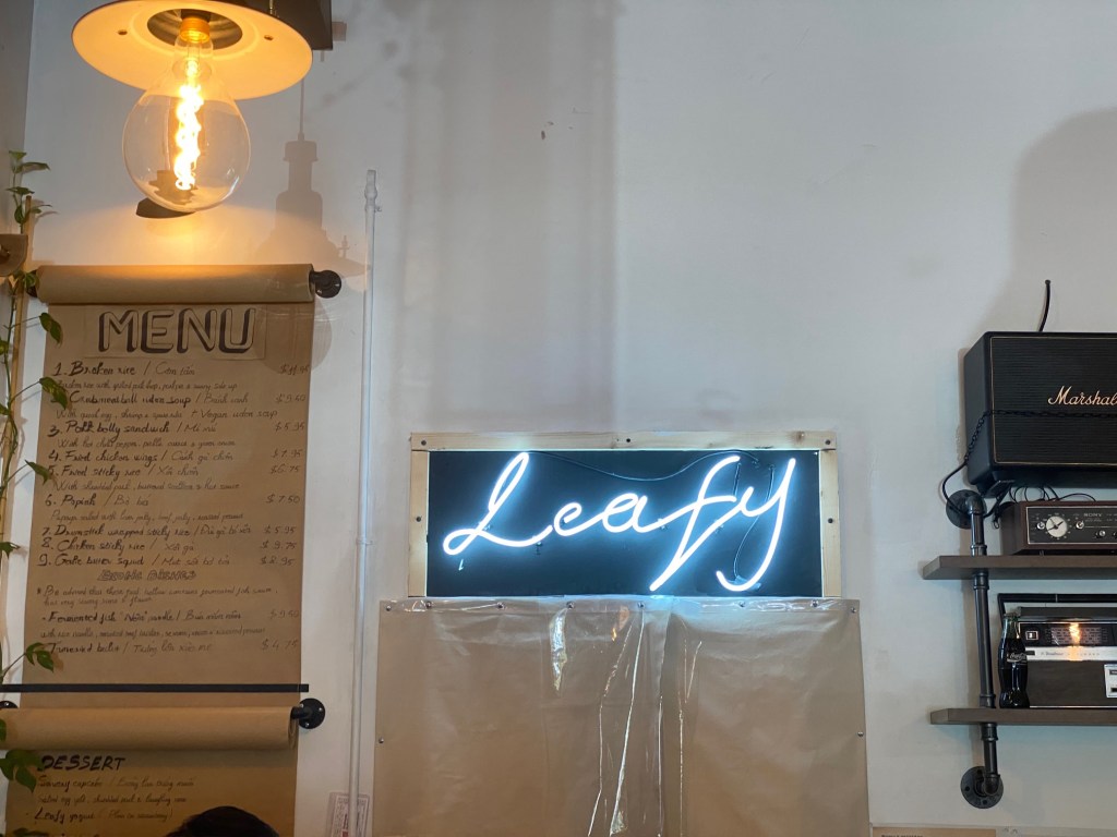 I had been dying to go to Leafy since it opened in July (now that I’m writing it out, it doesn’t seem like so long but whatever). I got there at 2:07PM and there was already a line (it opens at 2PM Wednesday-Sunday). Luckily, the line went quickly and by the time our food/drinks were done we were able to sit at one of the tables. I must warn you that the place is extremely small. Since it was my first time, I wanted to take in the whole experience by dining in.