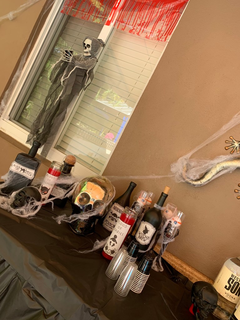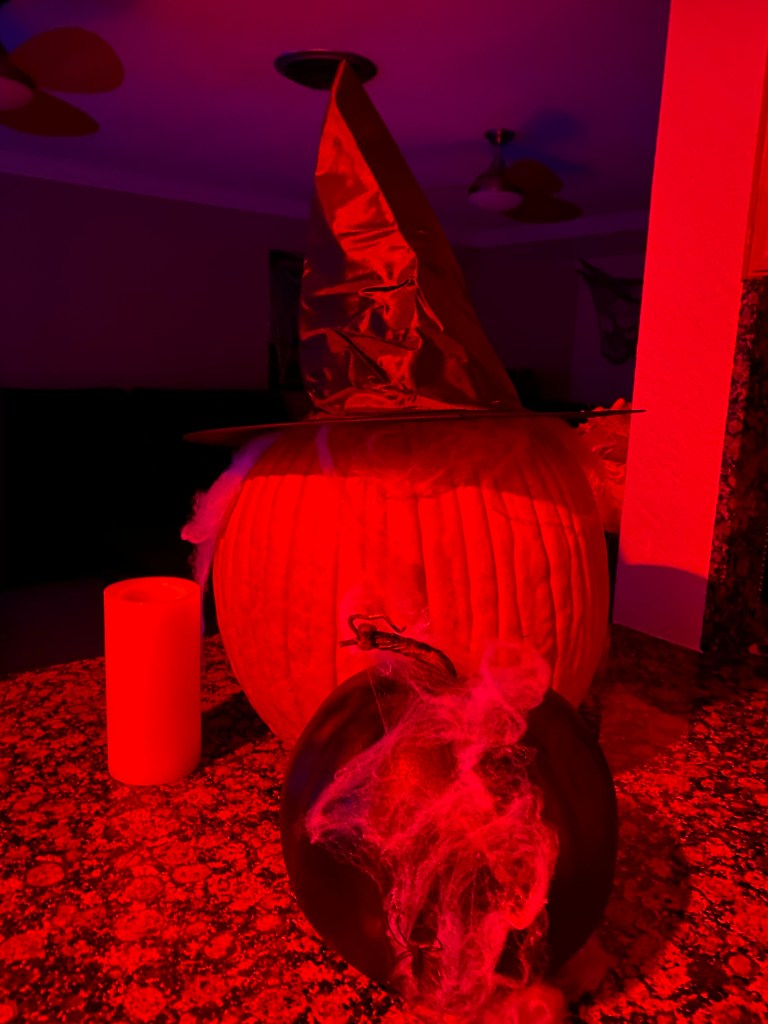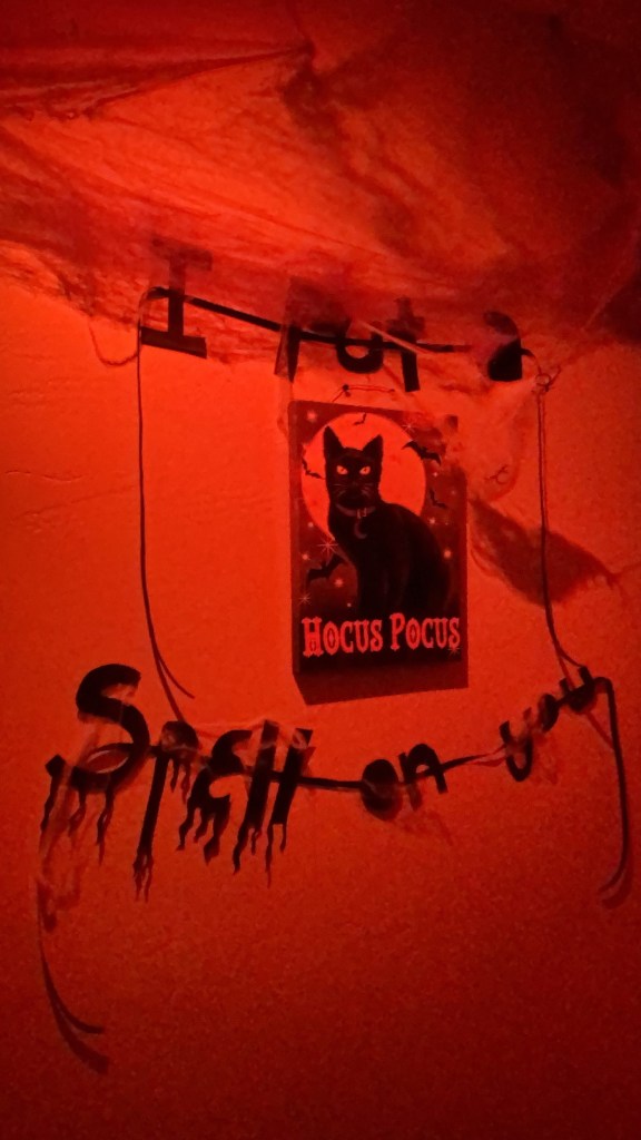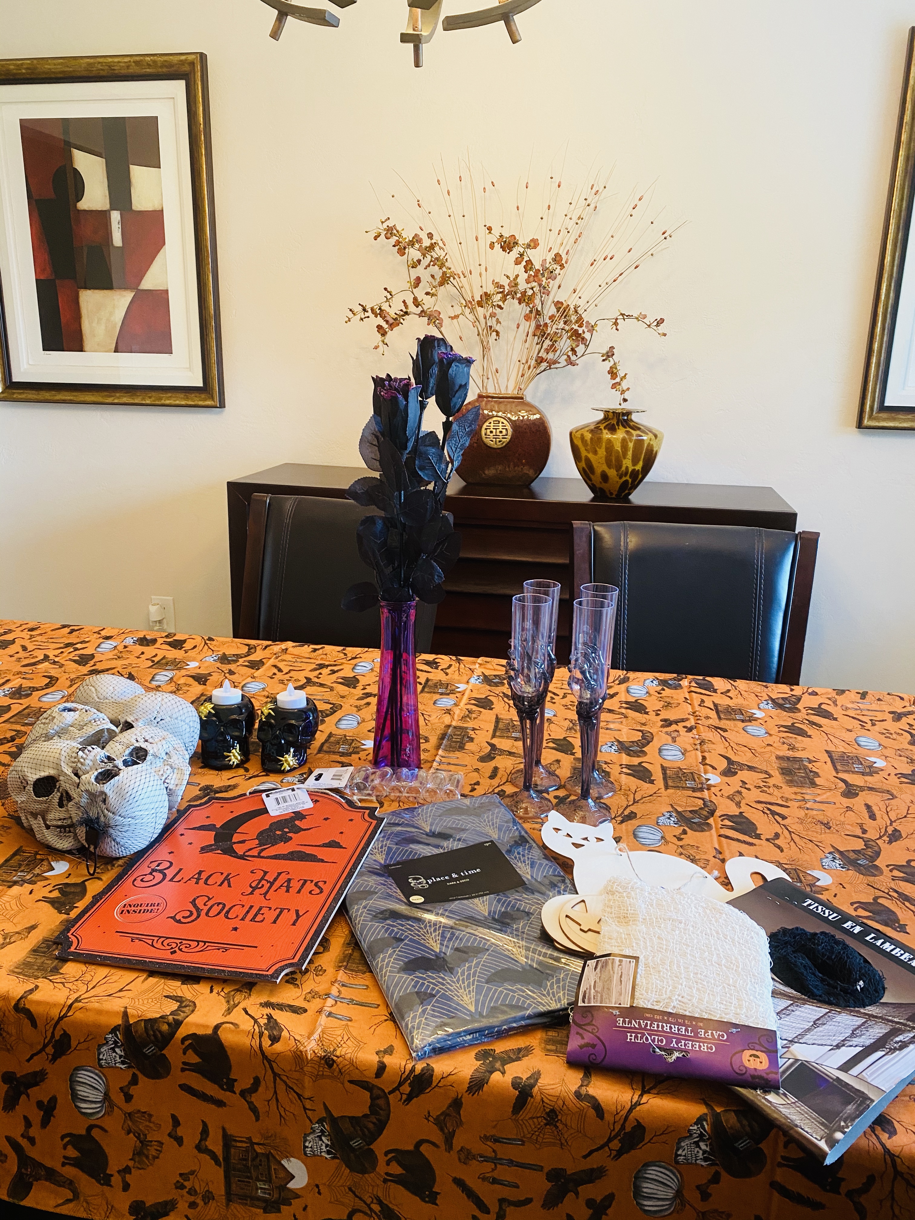 Ok, so..this is how it STARTED. I got some stuff at the Dollar Tree and JOANN Fabrics & Crafts just for kicks. Then, it evolved into this whole Halloween “experience”.