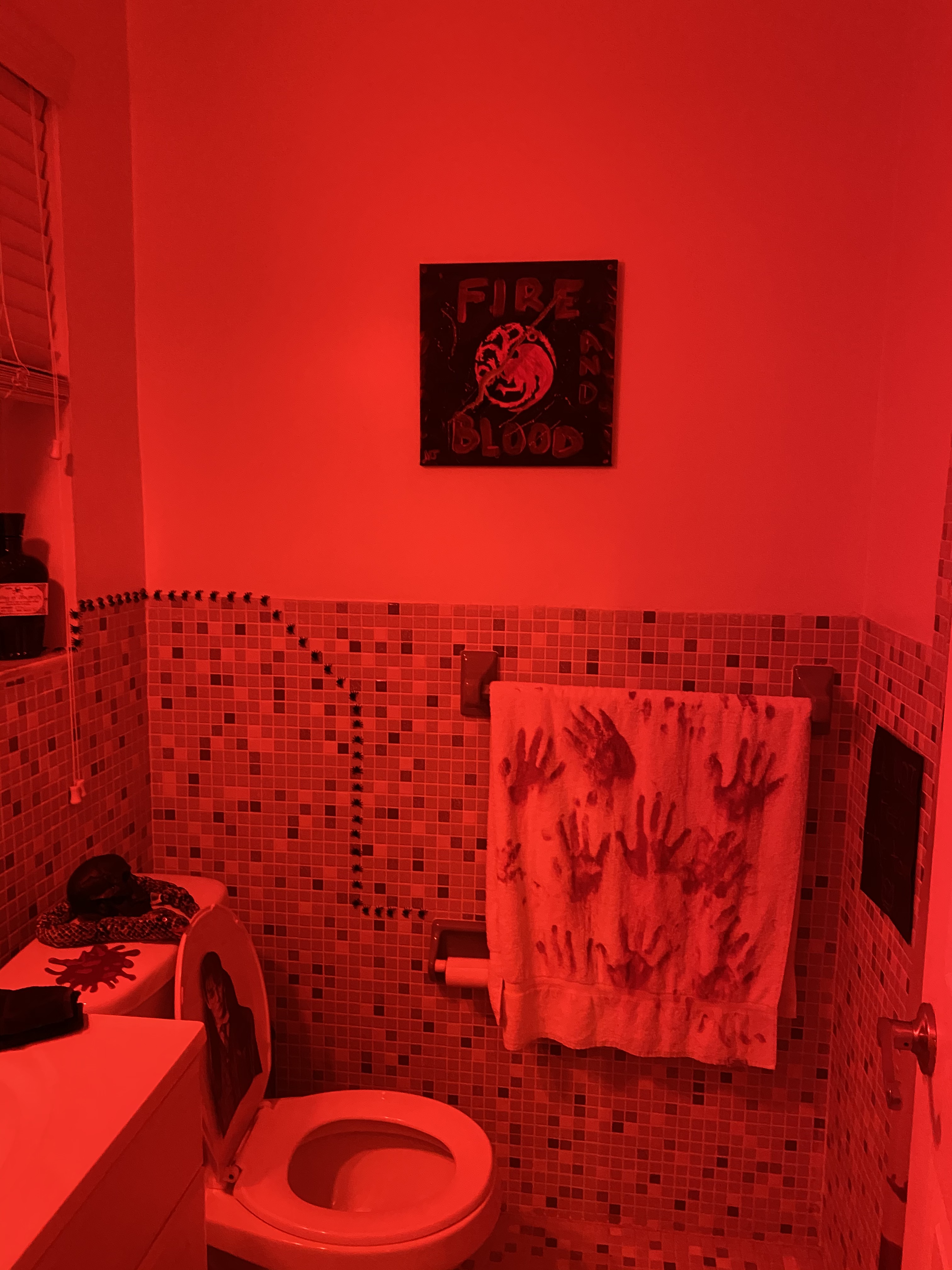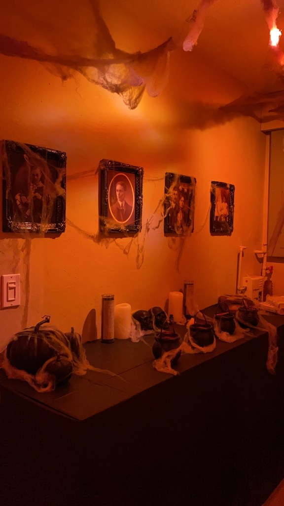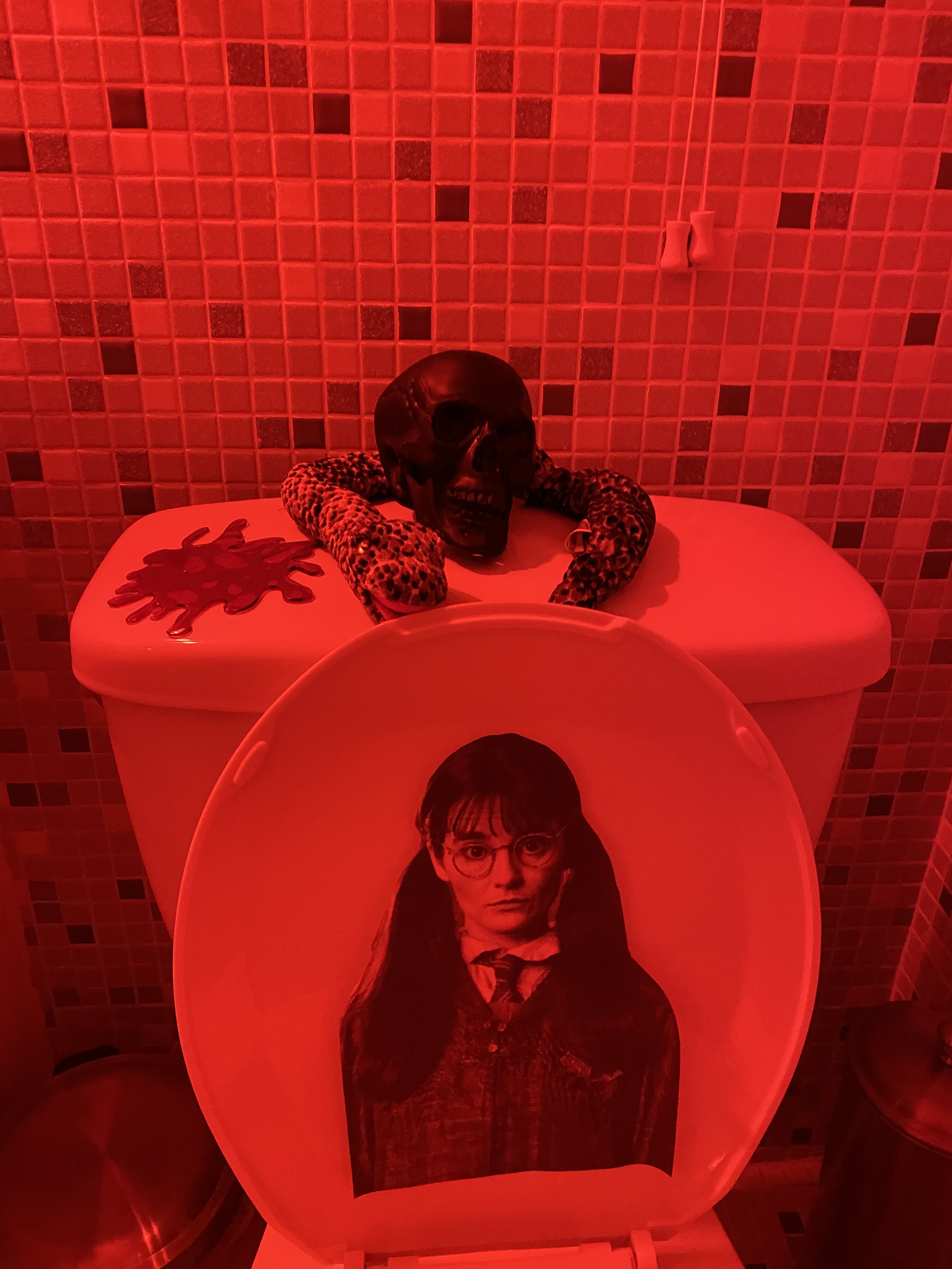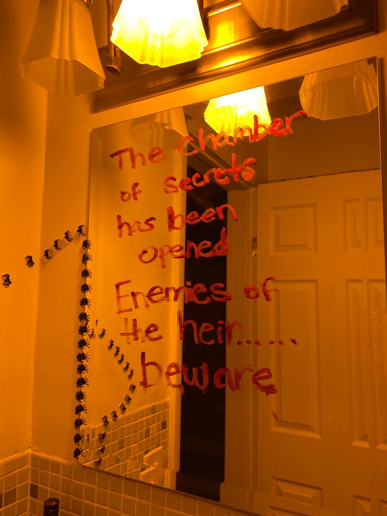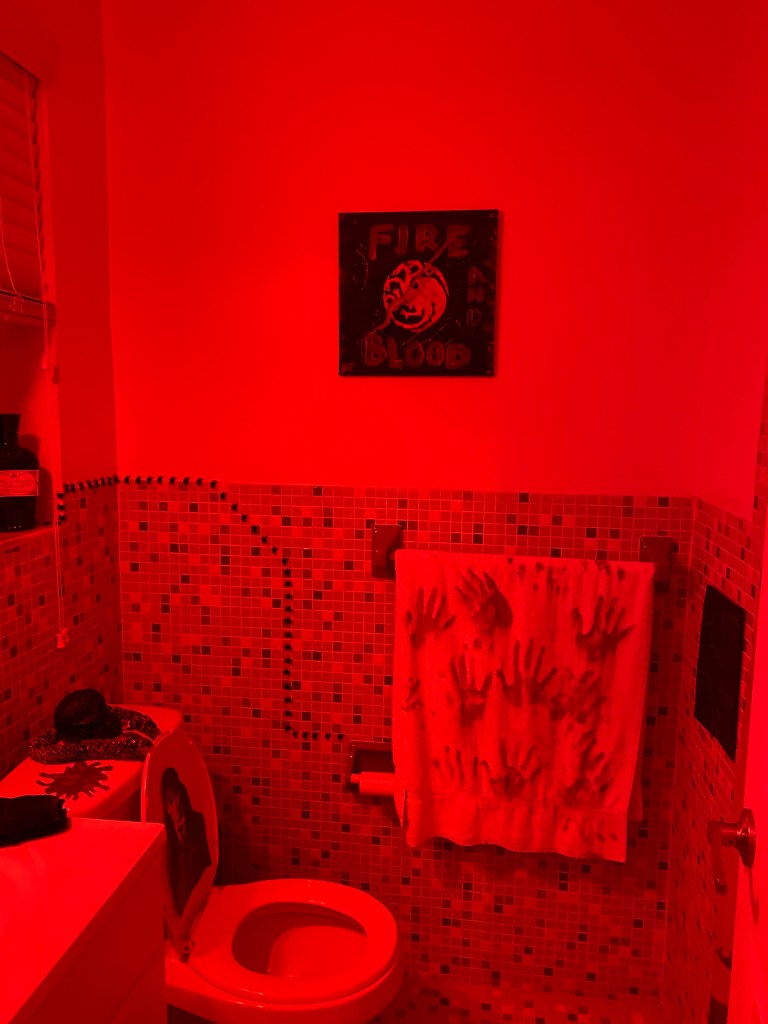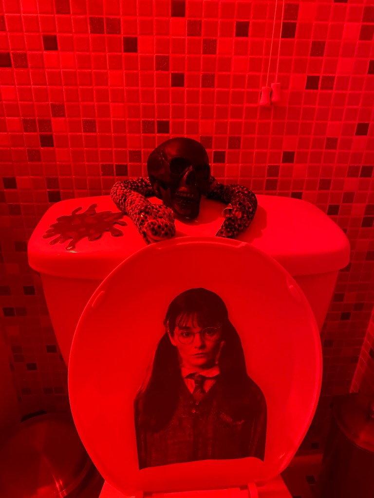 Not sure about you, but I found The Chamber of Secrets terrifying as a kid…Our bathroom pulls from the Harry Potter universe and adds some other elements to amplify the mood.