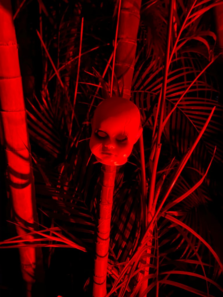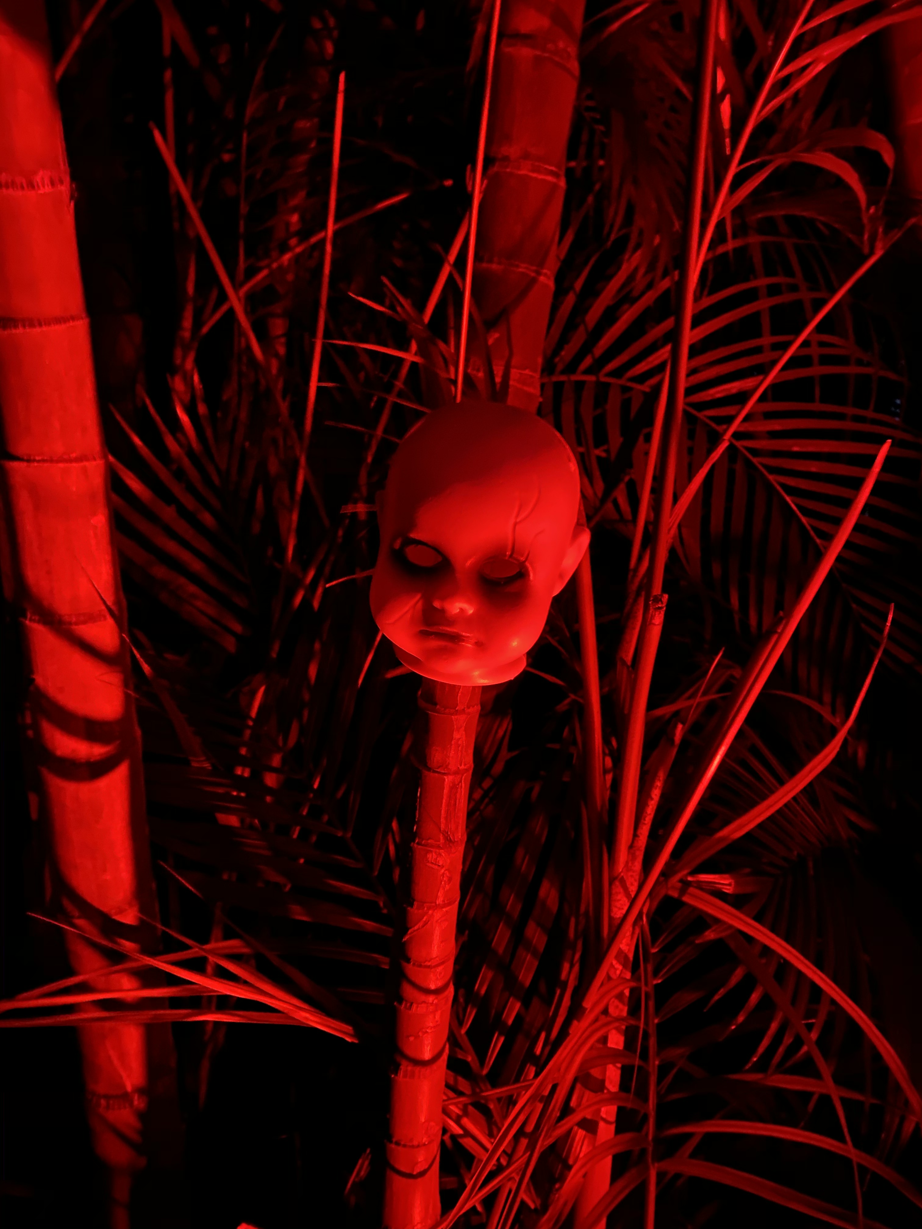 I do not know what it is with babies, but they are super creepy. You can buy these heads at Home Depot or just rip them off of dolls and make them scary looking.