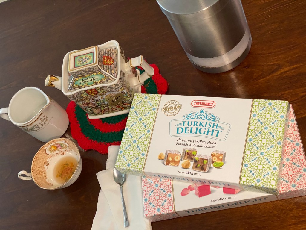 I got the Turkish Delight treats from TJ Maxx and thought they were fitting. Also, nothing screams “English” quite like tea!