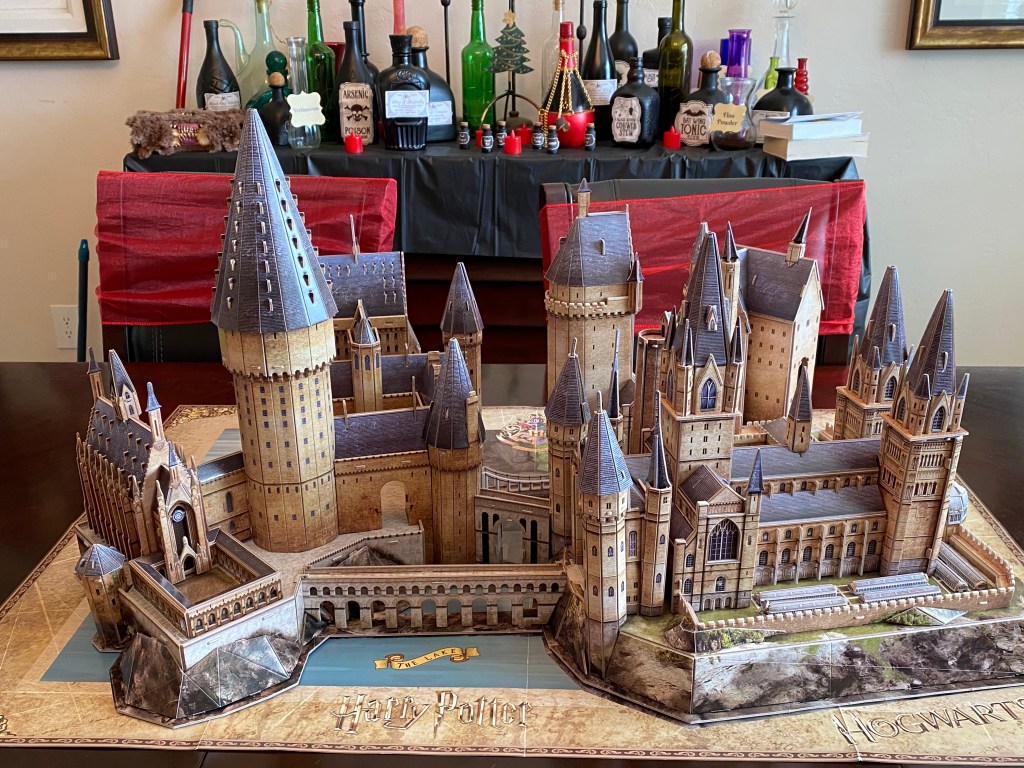 This year we completed some Harry Potter 3D puzzles from Costco to complete the “vibe”. I am definitely going to struggle taking these down, because they came out so cute.