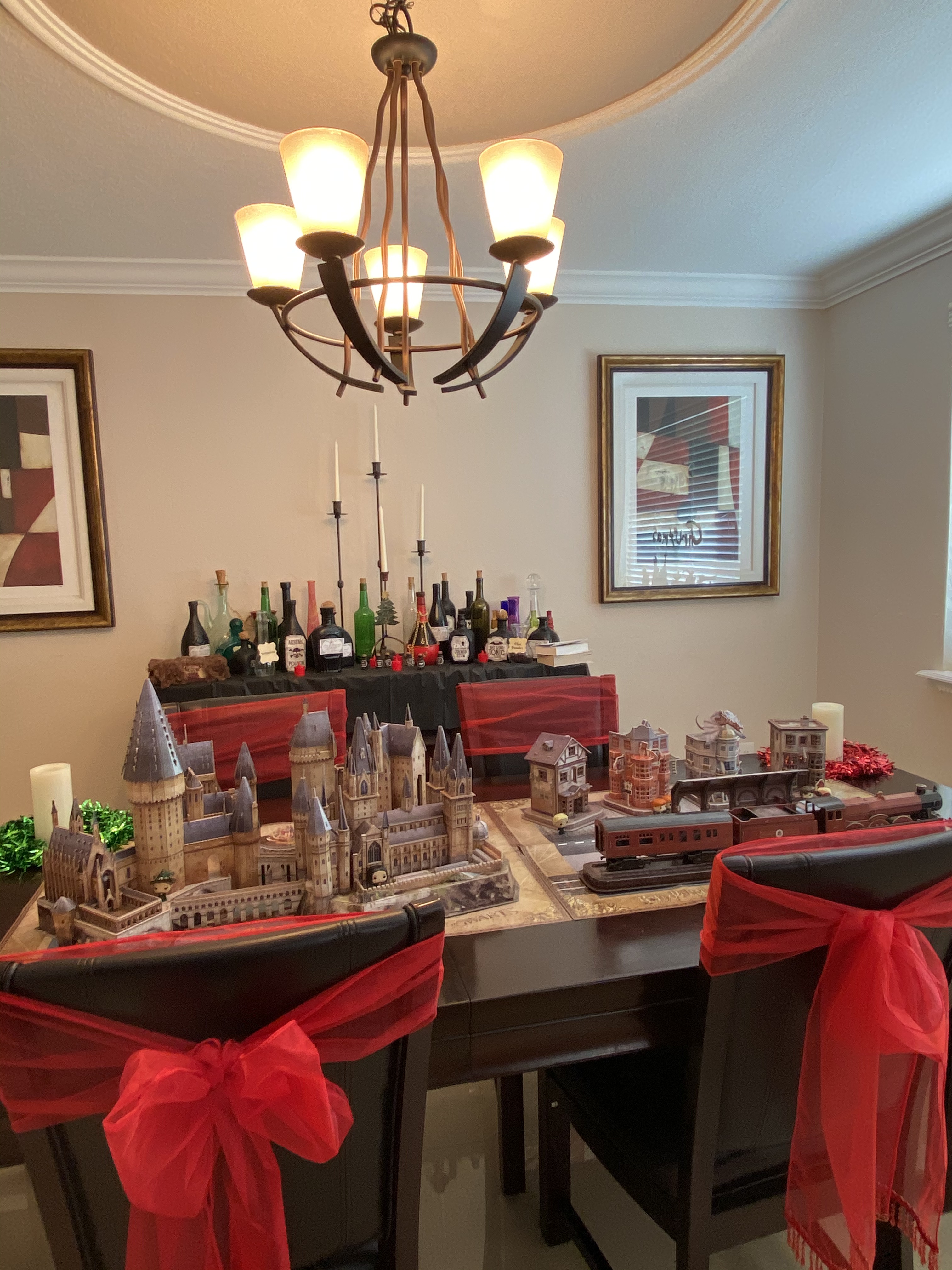 This year we completed some Harry Potter 3D puzzles from Costco to complete the “vibe”. I am definitely going to struggle taking these down, because they came out so cute.