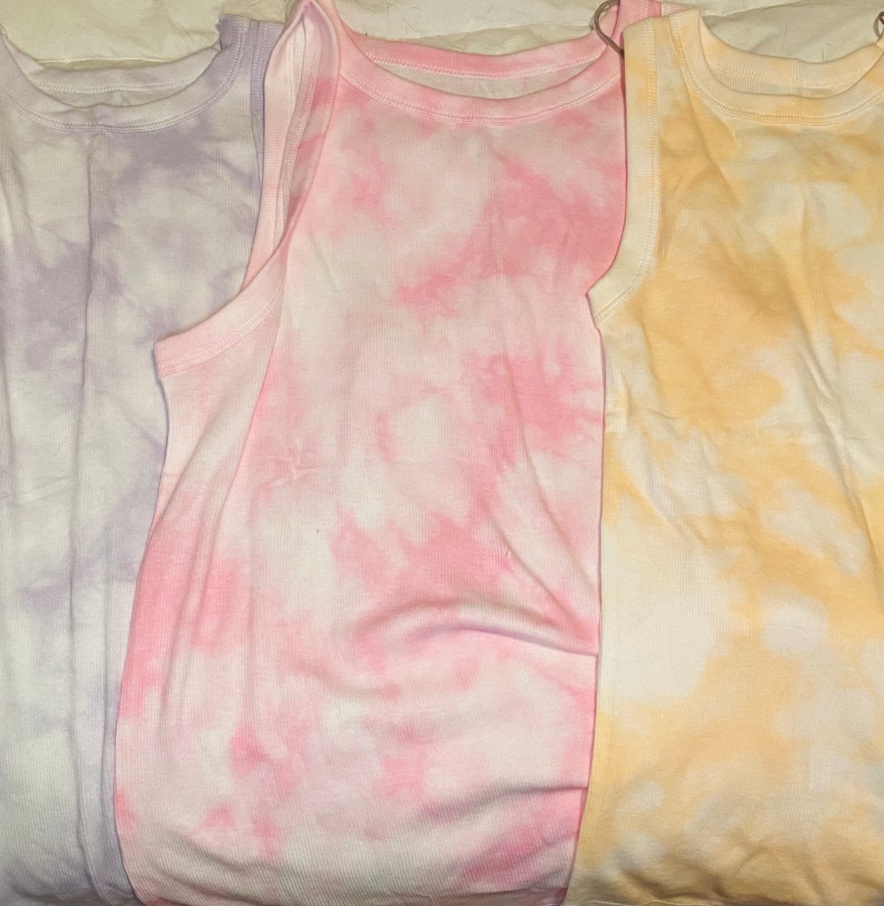 I purchased the light orange xs Women’s Rib Tank Top from Target, as well as the pink and the purple for my mom and sister. I got them each for $4, but I think they went back to regular price ($8).