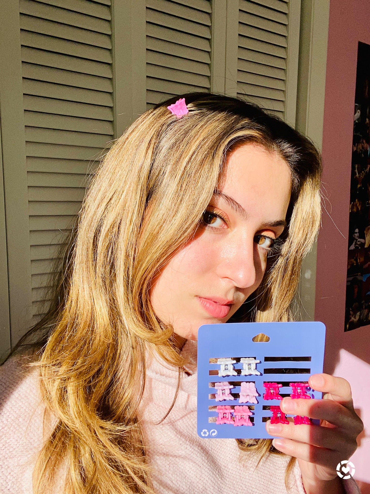 My sister got me these butterfly hair clips from Claire’s and I am obsessed with them. I think I have worn them multiple days in a row….The colors are perfect for Valentine’s Day, & February in general. They also remind me of my childhood.