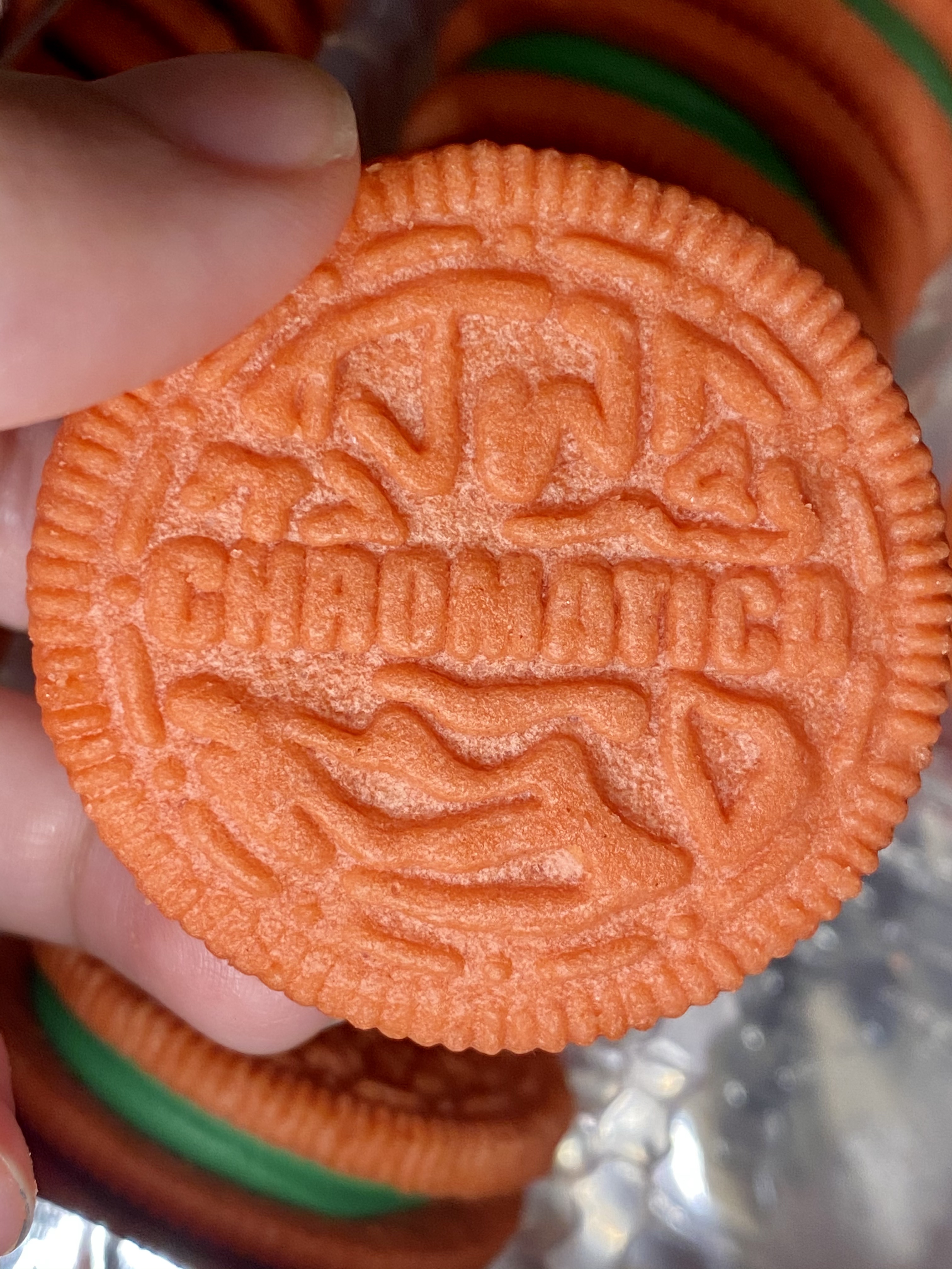 These Oreos taste like regular Oreos (which I am happy about) but are much prettier.