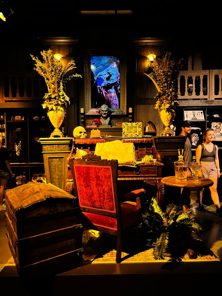 I would love to highlight the tribute store, since I enjoy going into it and exploring everything they sell. I usually end up buying something. This time, I got Beetlejuice bucket hats and a vegan skull brownie.