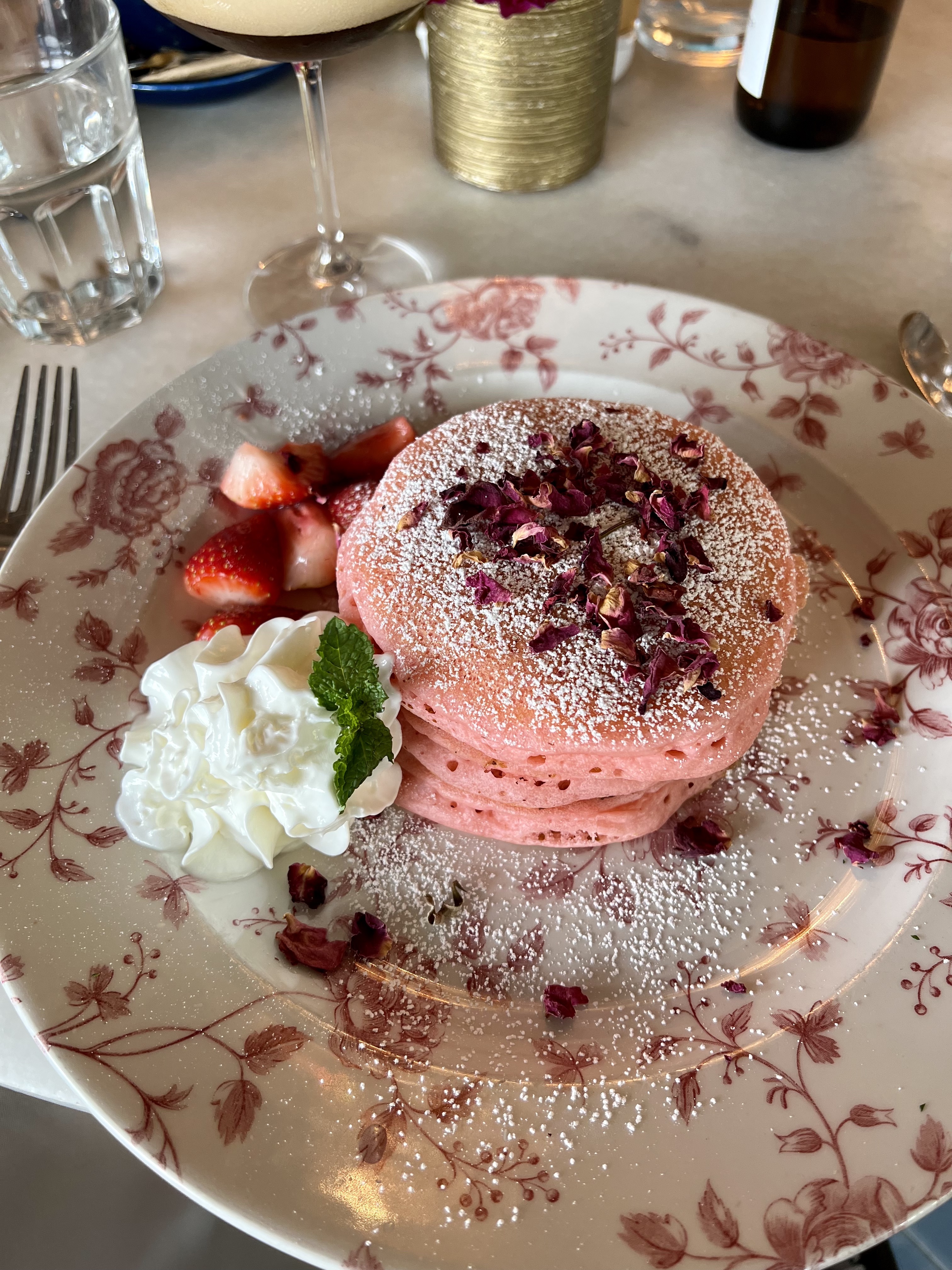 To eat, I had the Rose Petal Pancakes because well, I saw pictures online and they looked all pretty in pink. I am not a fan of rose flavored food (I know), but they were actually good and not too strong in the rose department.