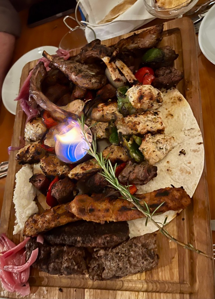 For dinner, we had the Layali Mediterranean Feast, which was recommended to us by the waiter and Yelp. It comes on fire, so 10/10 for presentation. Everything I ate from it was delicious. I did, however, get really full and was unable to finish it.