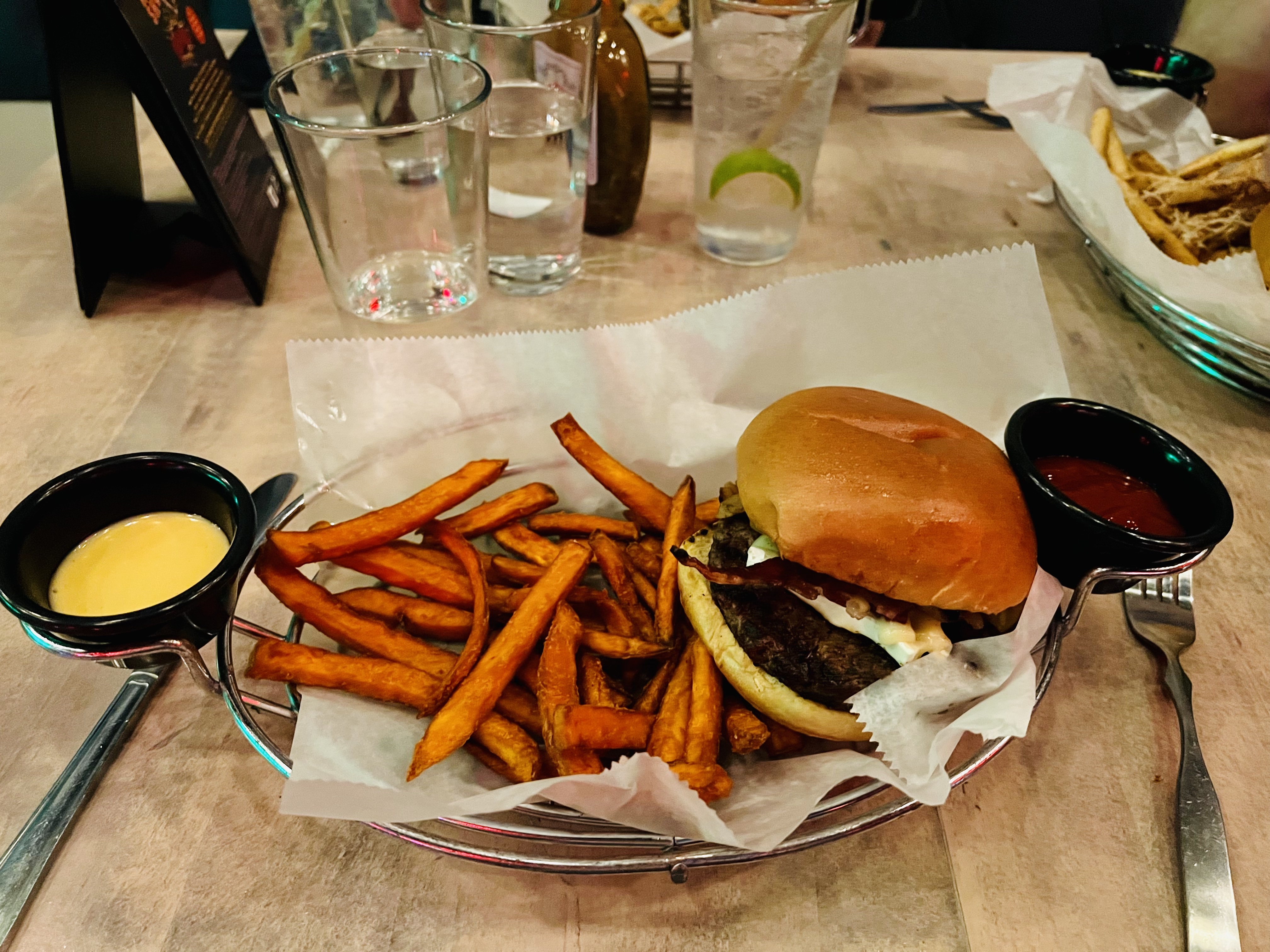 For dinner, I was immediately sold on the Bababooey Burger (Brie Cheese, Caramelized Apples, Bacon, Grilled Onions, Honey Mustard, Challah Bun). The burger was perfect. I loved the mix of flavors! As my side I, of course, opted for the sweet potato fries.