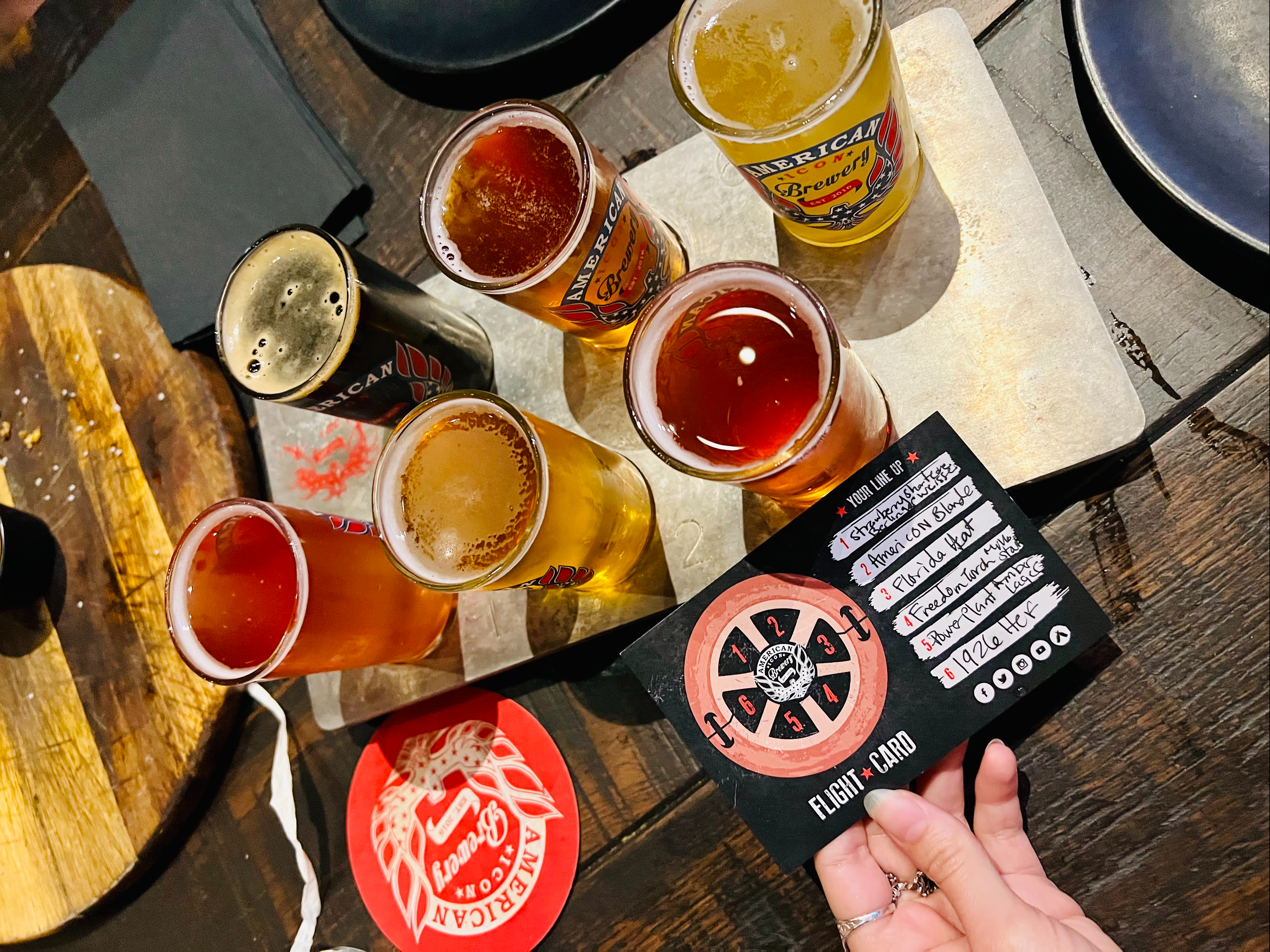 American Icon Brewery has some pretty iconic flights. The flight came with 6 glasses that were pretty big and filled to the brim. The flight contained Strawberry Shortcake, Americon Blonde, Florida Heat, Freedom Torch, Power Plant, and 1926 Hef. Out of those, the Freedom Torch Milk Stout was my favorite.