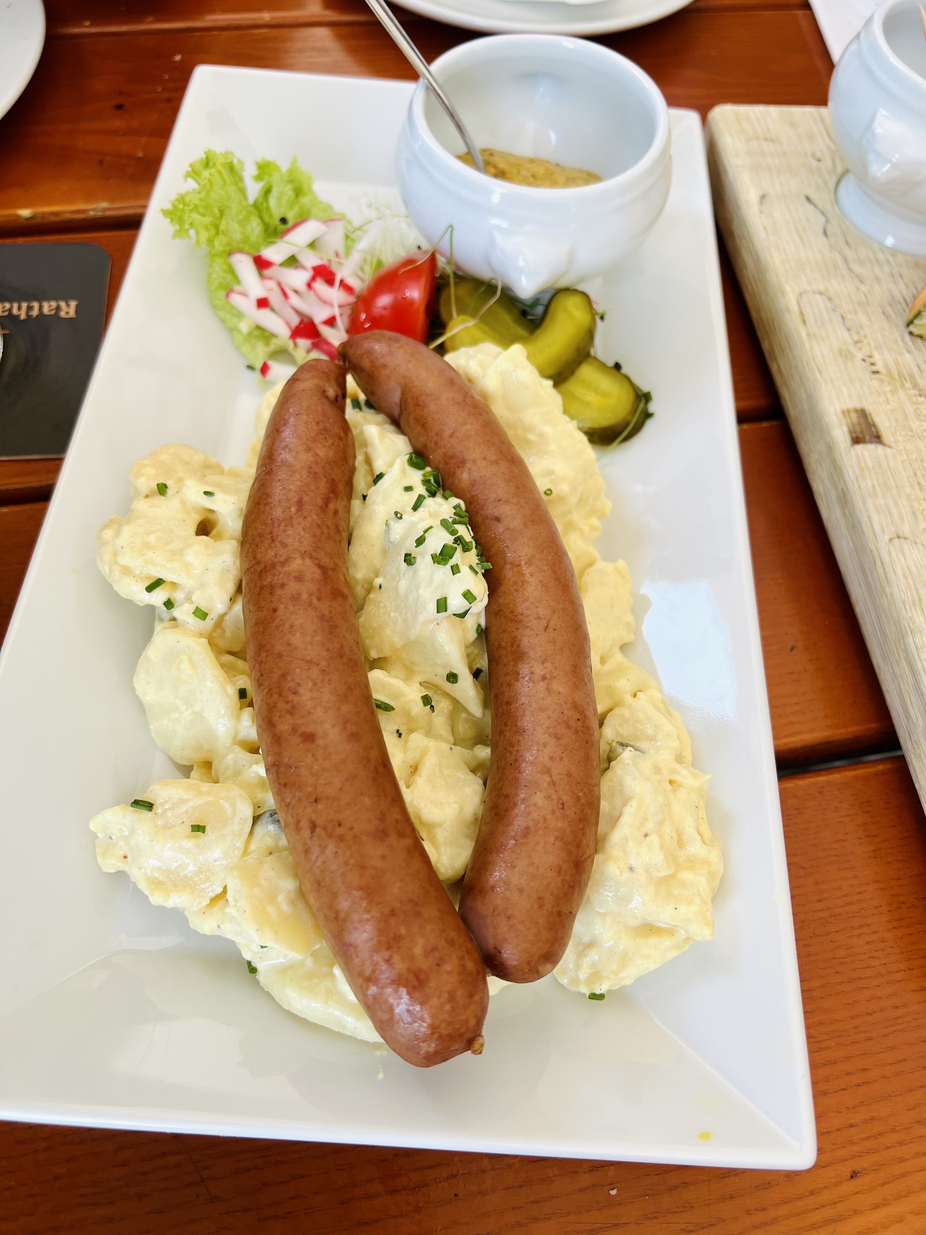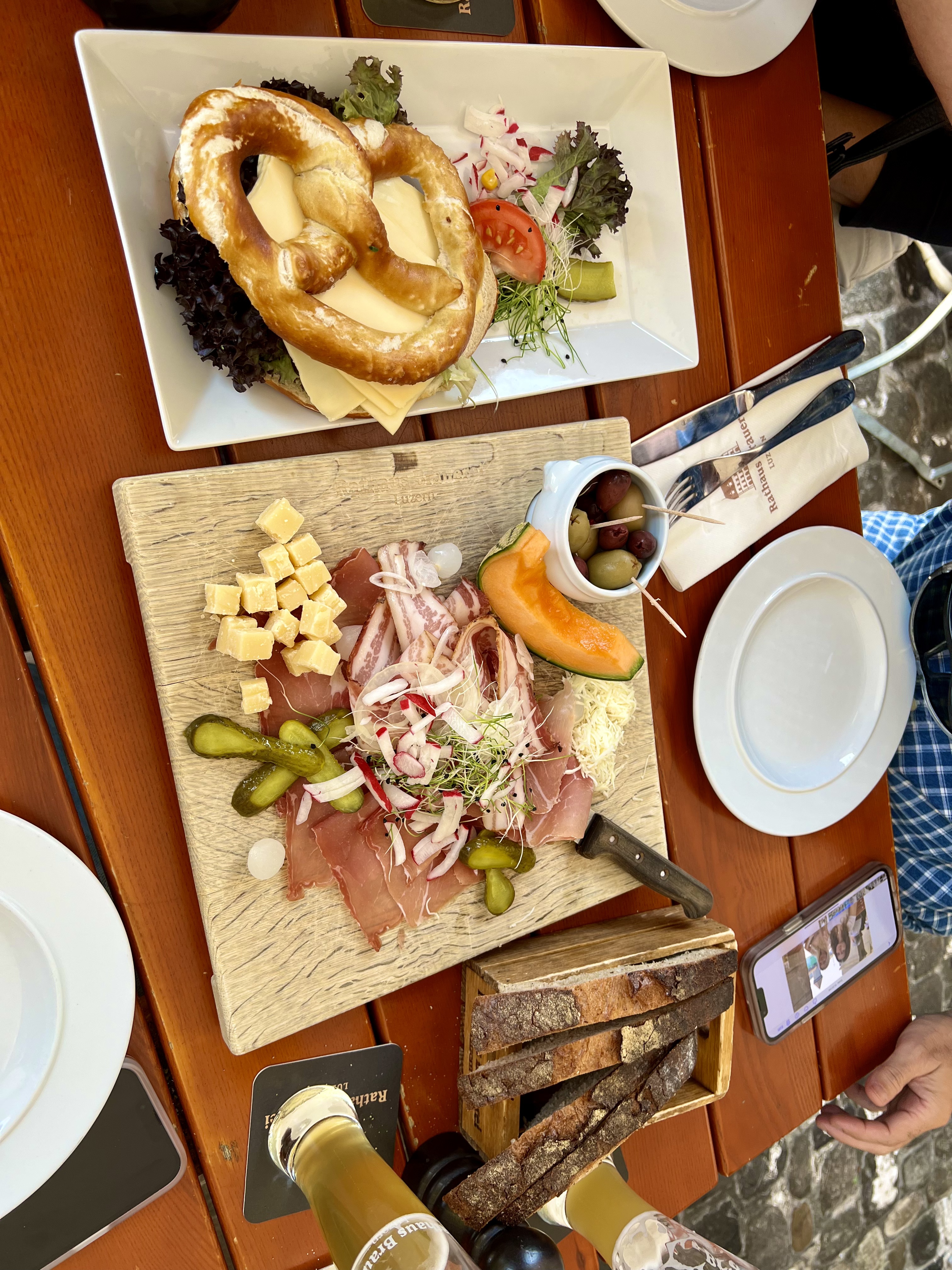 We arrived ready for some eats and German/Swiss beer, so we checked out Restaurant Rathaus Brauerei Luzern. Before coming here, I saw that this brewery was popular. It did not disappoint. I had the house beer and shared some appetizers. I found everything fresh and delicious. Big surprise, cheese and bread were phenomenal – actually, everything was (they had the best olives, pickles, onions, etc.). Location, location!!! I loved the view of the lake I had while sipping my cold beer.