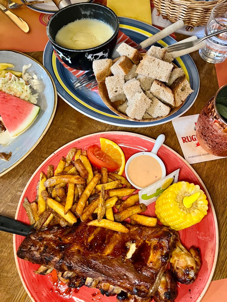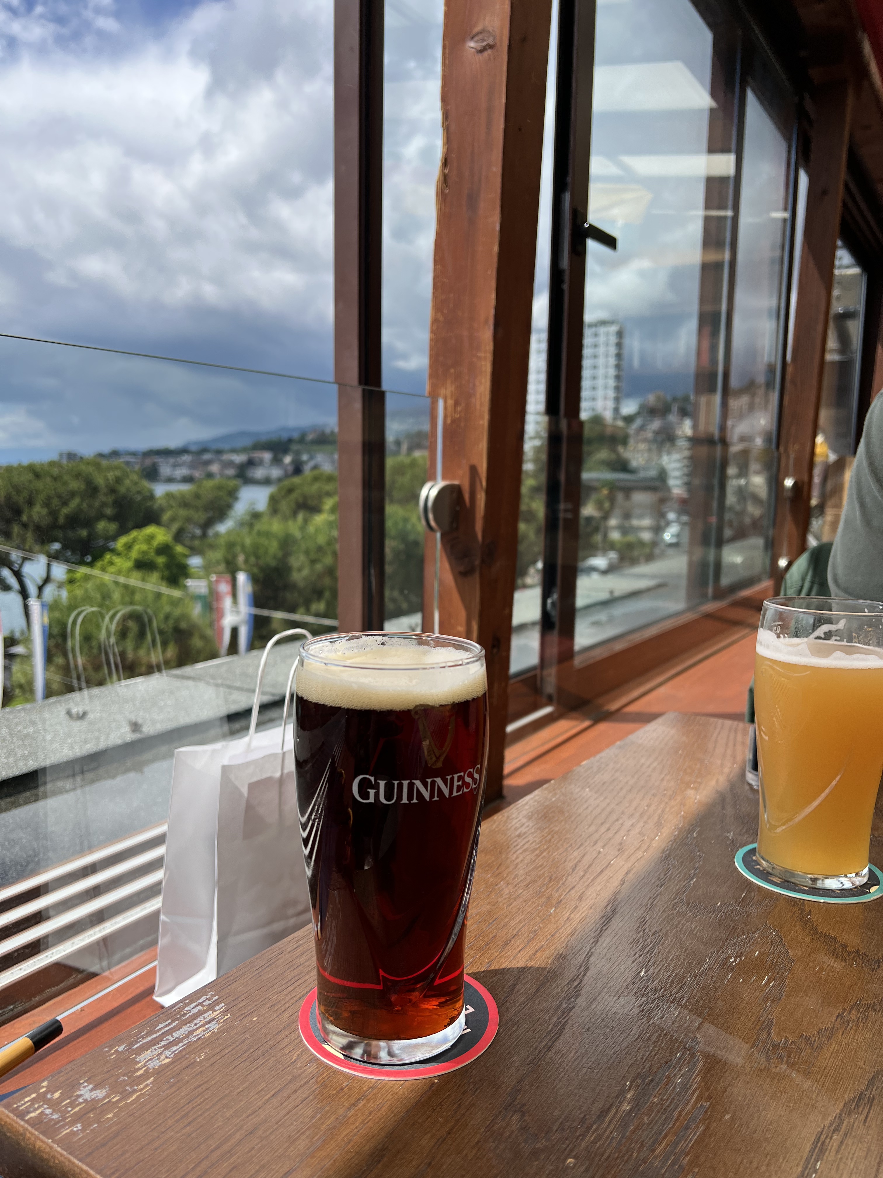 We decided to check out Thun and get some lunch and chocolate while we were there. Let me tell you, the view was gorgeous as we drove along the lake (it was giving me Pacific Coast Highway but Switzerland edition). I loved the European architecture of the buildings and how we could see the Thun Castle from afar. We were a bit tired of Swiss food, so we went to McArthurs Pub for some beers and fish and chips. After that, we got chocolate at a Läderach store in town – when in Switzerland🍫! It all hit the “Americans in Europe” spot. In full transaprency, we went to take a nap after all this adventuring (& eating).