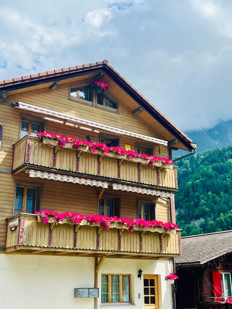 After lunch in Lucerne, we drove a bit over an hour to our next stop. Wilderswil, a village and a municipality in the Interlaken-Oberhasli administrative district in the canton of Bern, was our home base for 3 days. From Wilderswil, you can easily access other parts of Interlaken, Lauterbrunnen, Wengen, Grindelwald-First, Thun, and more. I loved how close it was to so many sightseeing spots without being in the more touristy Interlaken. I quickly noticed how beautifully manicured everything is over here. I have never seen so many roses. It made me think about who is responsible for all the bright – and very much alive – flowers all over Switzerland. Whoever handles this….