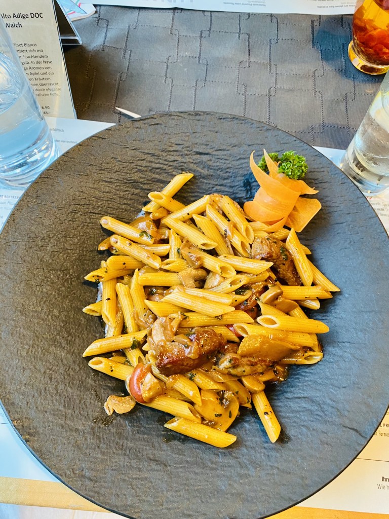 We stayed at Hotel Berghof Amaranth where the view was phenomenal, breakfast was included, and I got to sleep in an attic (not a typo, haha – it made my treehouse dreams come true). I loved how peaceful it was here. There is also a friendly hotel cat that walks around outside!