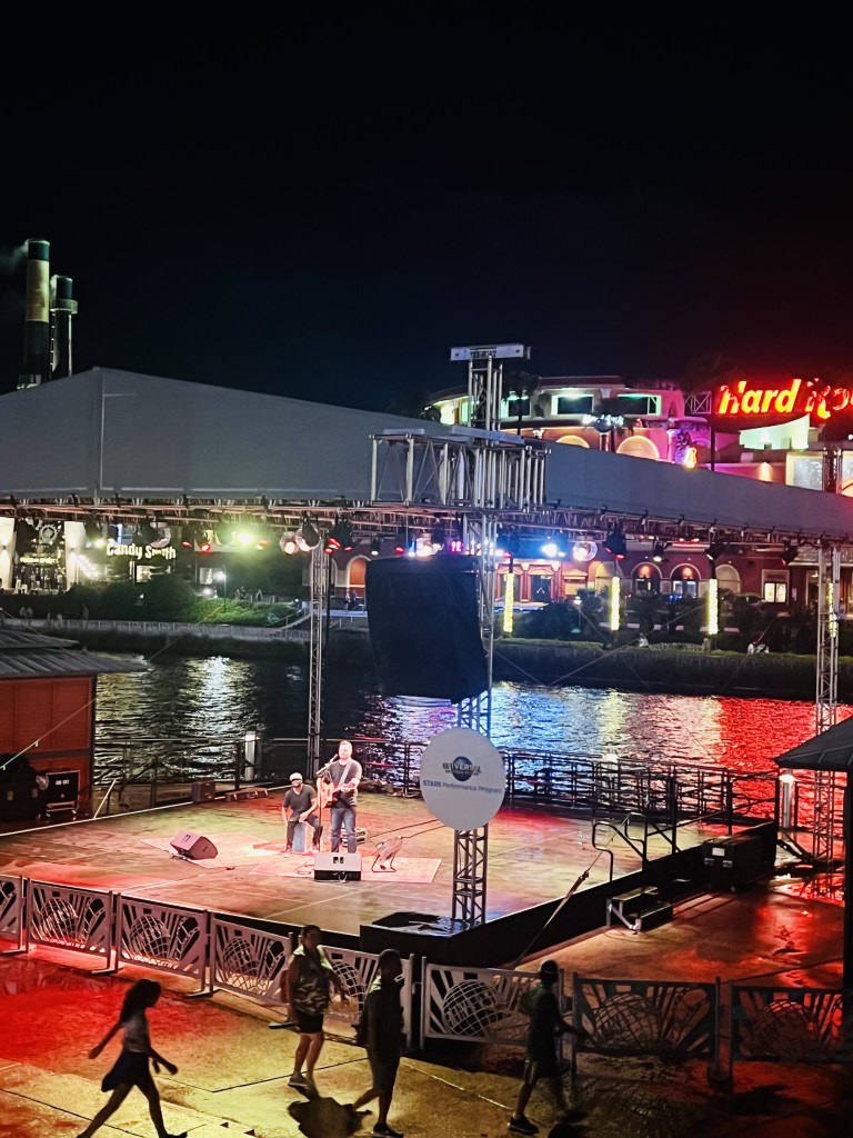 During this visit, I noticed the live music was even more vibrant and joyful. I usually don’t see people sitting around listening to the music in City Walk. This time, rain & all, people sat and enjoyed the live bands. We got our Fat Tuesday drinks and listened to the talented musicians as we waited for our dinner reservation.