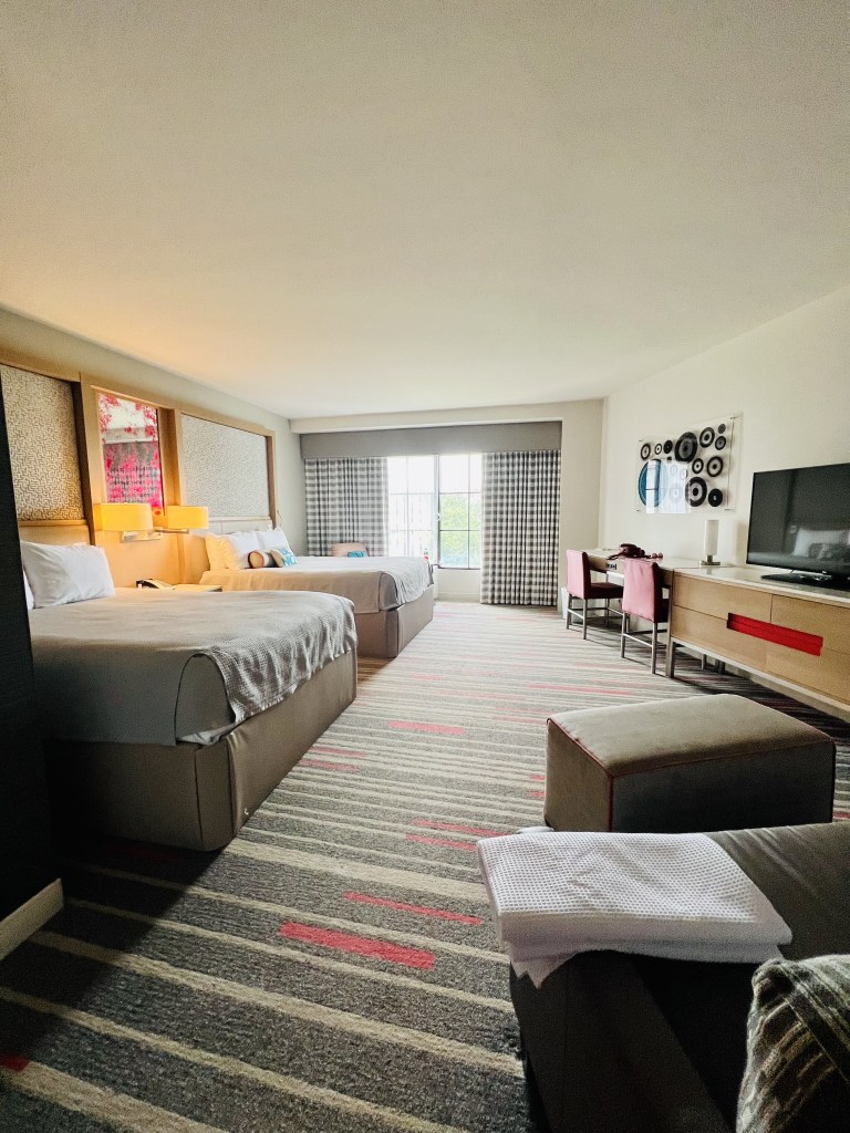 For hotel, we stayed at the Hard Rock. It may not be the nicest or newest, but it is the one with the best location (and they have a giant picture of Taylor Swift in the entrance)! We got a large room with a view of the courtyard and even got to take advantage of the pool during our visit. If you are a fan of espresso martinis, I recommend sipping an espresso martini by the pool🍸.