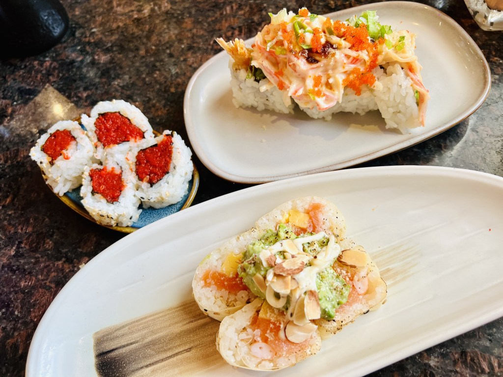 Sushi rolls I had: Spicy Tuna (top left), Ultimate Dragon (top right), and Natsu (bottom).
