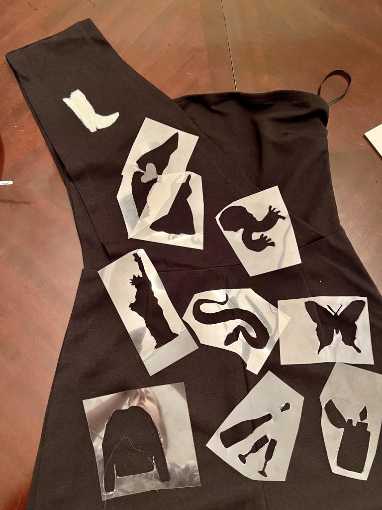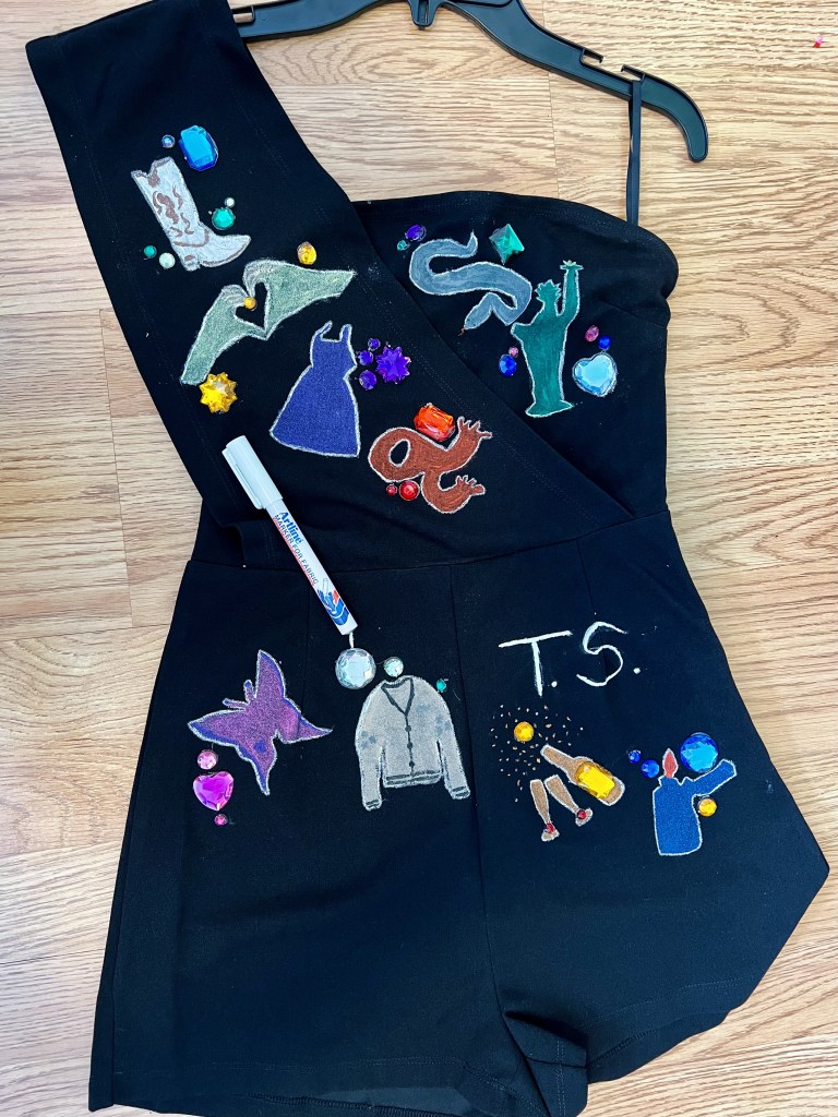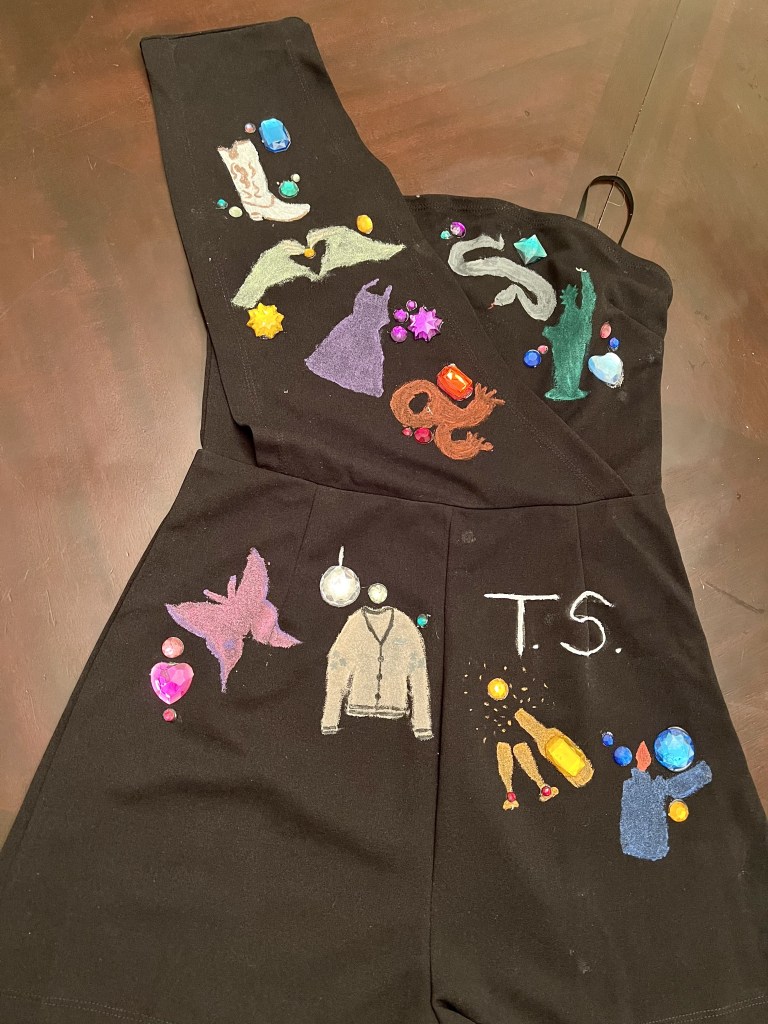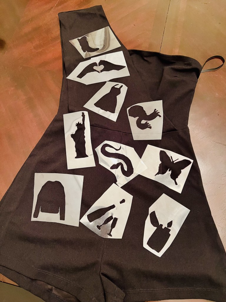 Select and prep your canvas. I chose a romper that reminded me of Taylor’s 1989/Reputation eras. I recommend ironing or steaming it before painting on it.