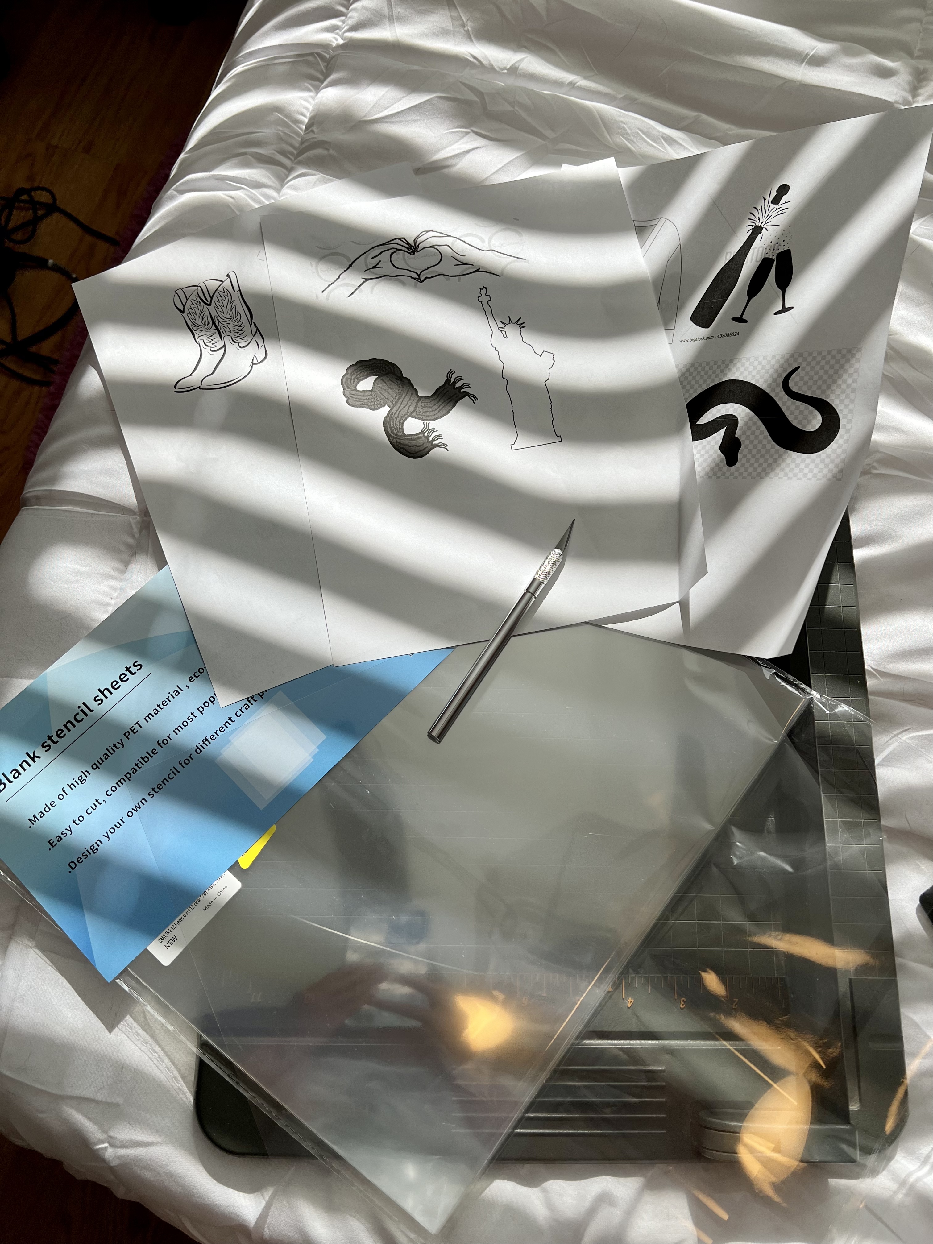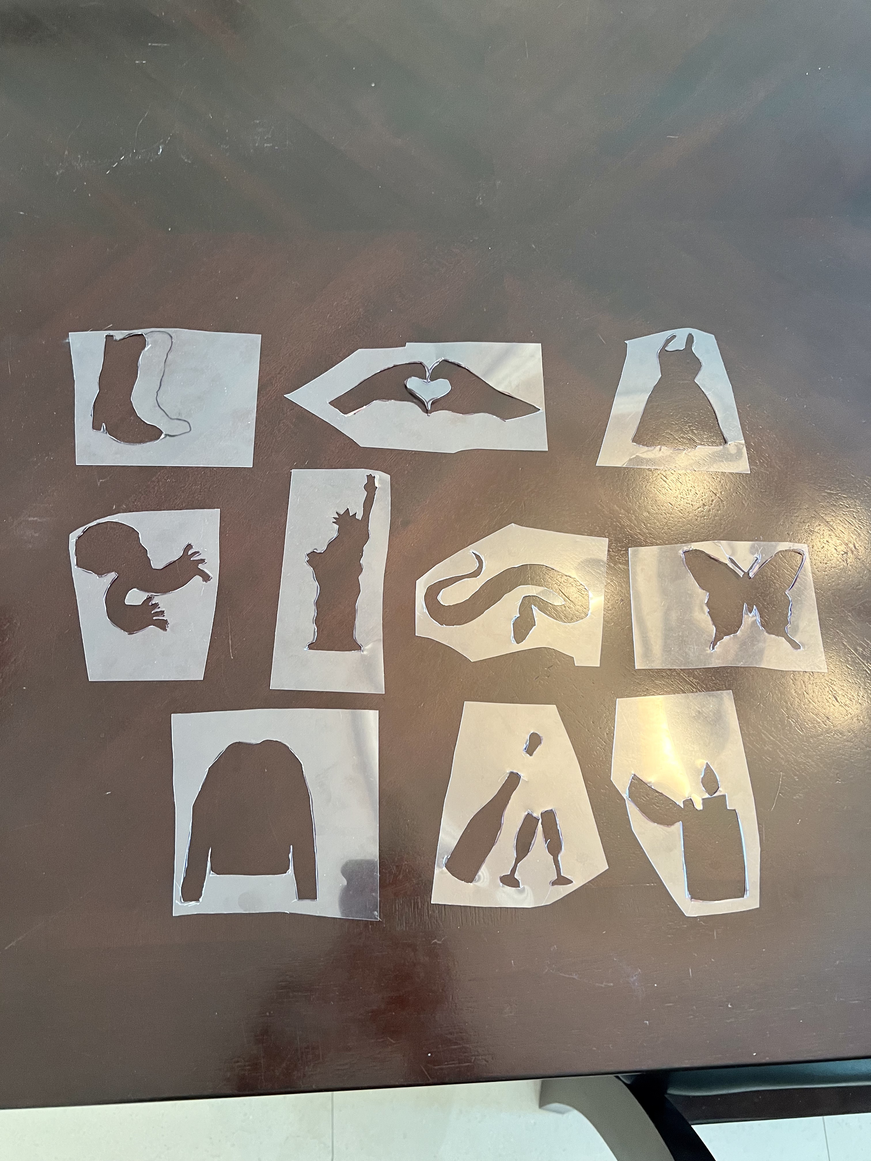 Decide and print out what you will create stencils on. I made a list of Taylor Swift’s eras and symbols for each of them. Then I found images online that I could use to help create the stencils.