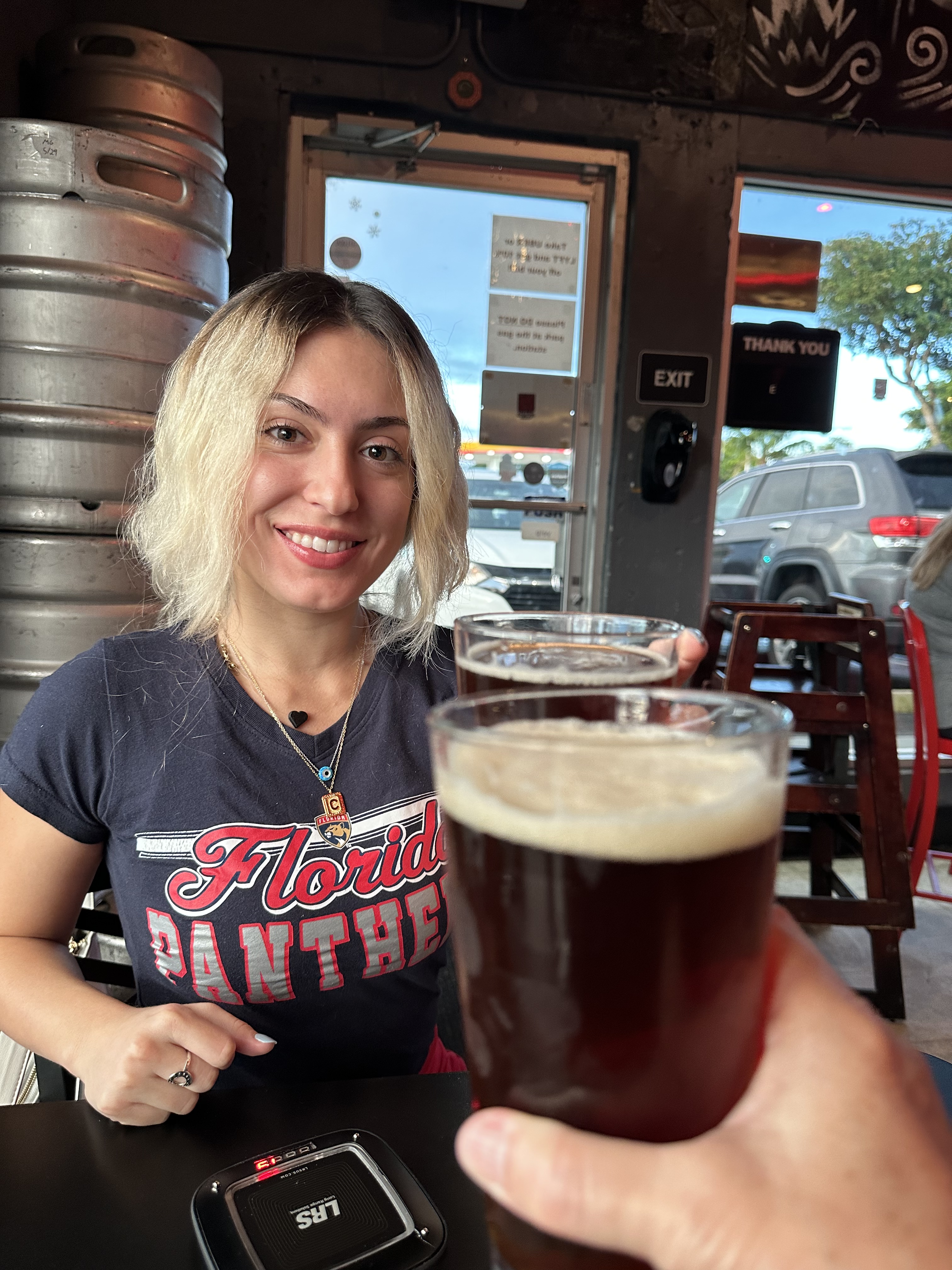 A fire pit brewpub & pizzeria – count me in! I went to Strange Beast to watch the FL Panther’s game, drink beer and eat pizza. Last time I went, they had run out of Avenge Me (their Irish red), so I had their blonde ale, Morning Glory. I enjoyed it but was looking forward to trying their red; it did not disappoint!