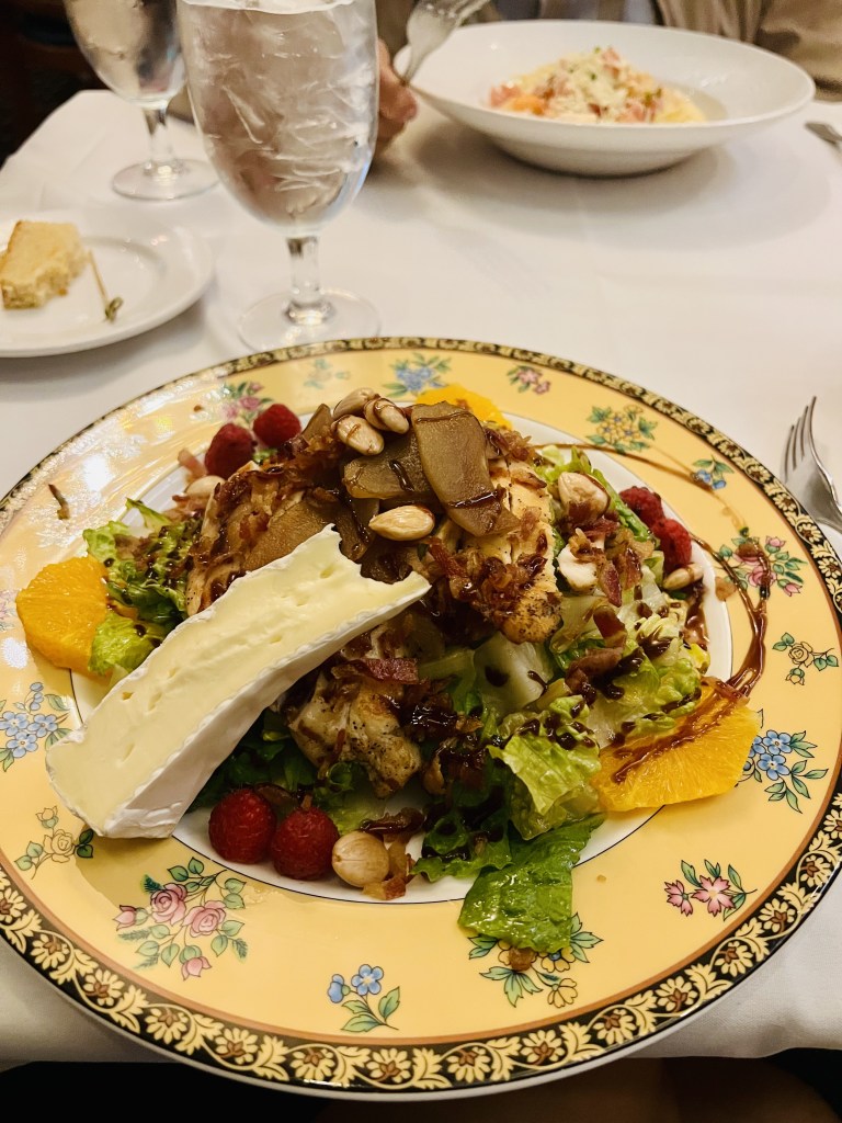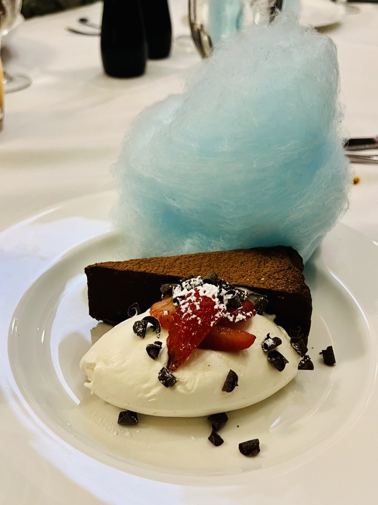 For dinner, we went to Lightfoot, a bank turned restaurant in Leesburg, Virginia. The interior was so ornate and picturesque! The dirty martini was too strong for me, but the waiter brought me some olive juice to make it smoother. For an appetizer, I had a tomato soup that was phenomenal, and then for dinner, I had Everyone’s Favorite Salad (chicken and greens tossed with raspberry vinaigrette, roasted almonds, naval orange, fresh raspberries, brie, balsamic glaze, pears, bacon, and grilled baguette) which was scrumptious. To top it off, I had the Mocha Ya Ya (flourless bittersweet chocolate torte flavored with espresso and served with whipped cream, fresh strawberries, chocolate sauce, and blue cotton candy!).