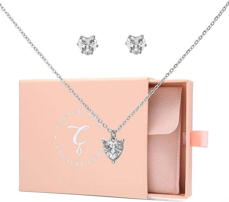 Couture Gems Heart Necklace And Earring Sets