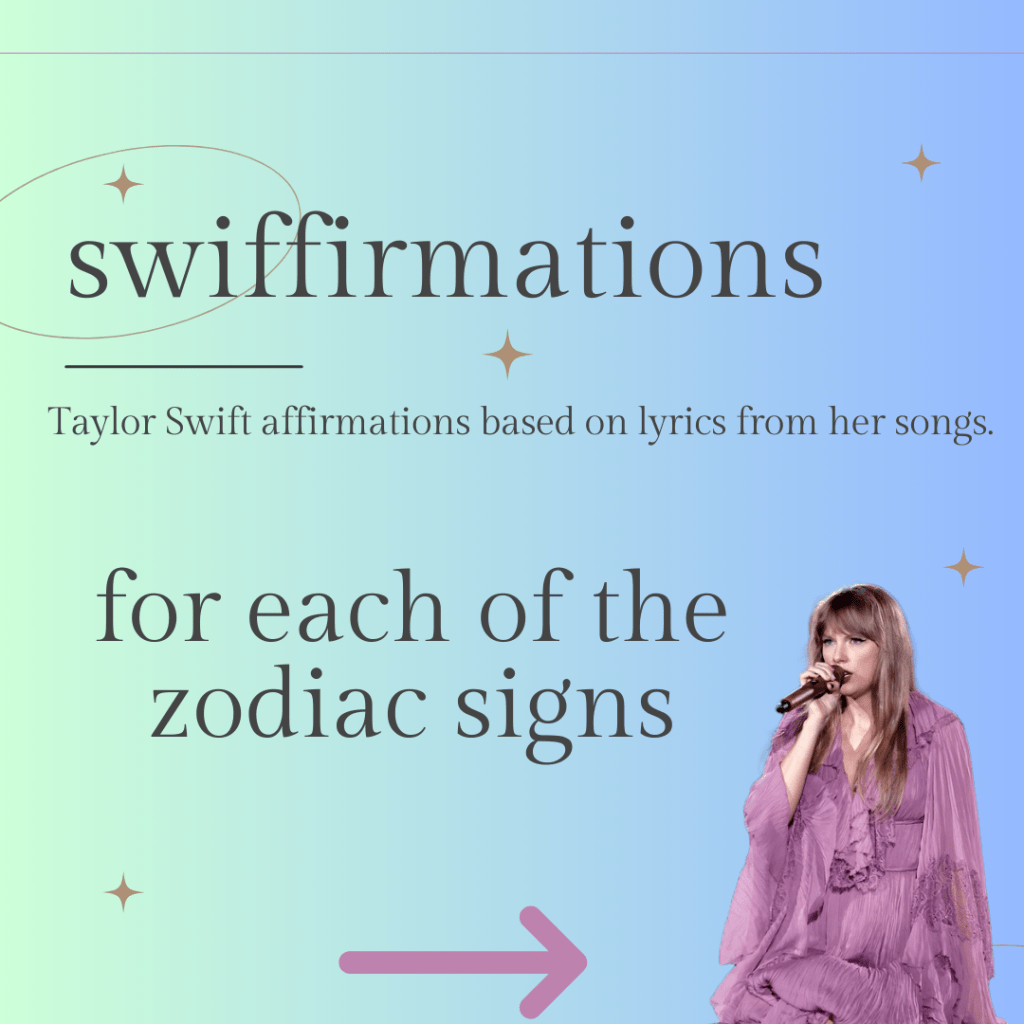 I’m combining some of my favorite things β Taylor Swift, affirmations (or Swiffirmations πβ¨) and astrology! From Aries to Pisces, let’s delve into personalized affirmations inspired by Taylor’s music to ignite the celestial spark within you.