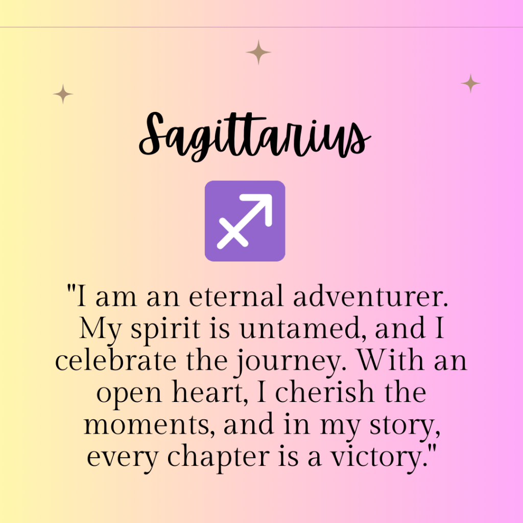 “I am resilient and open-hearted. In the face of challenges, I find strength within. Every ending is a chance for a new beginning, and I embrace the journey of starting over.”
