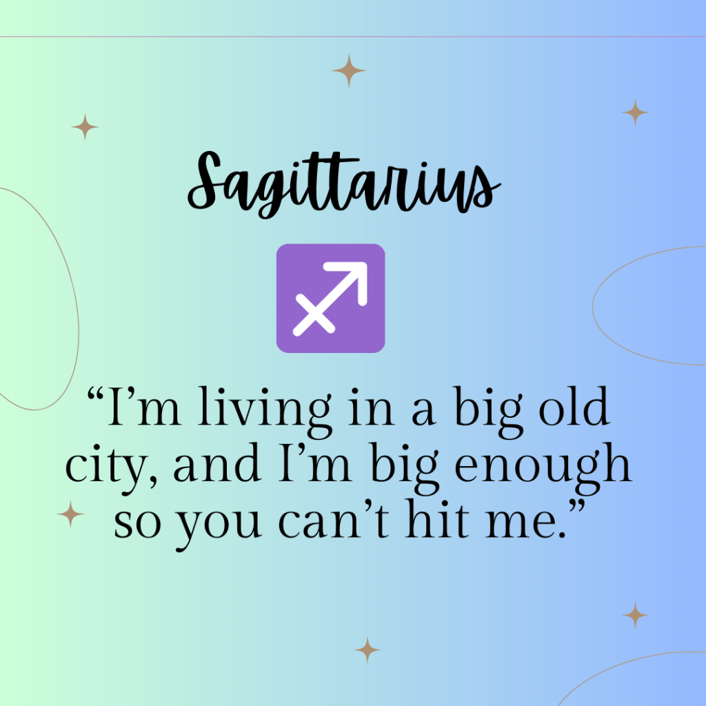 βIβm living in a big old city, and Iβm big enough so you canβt hit me.β