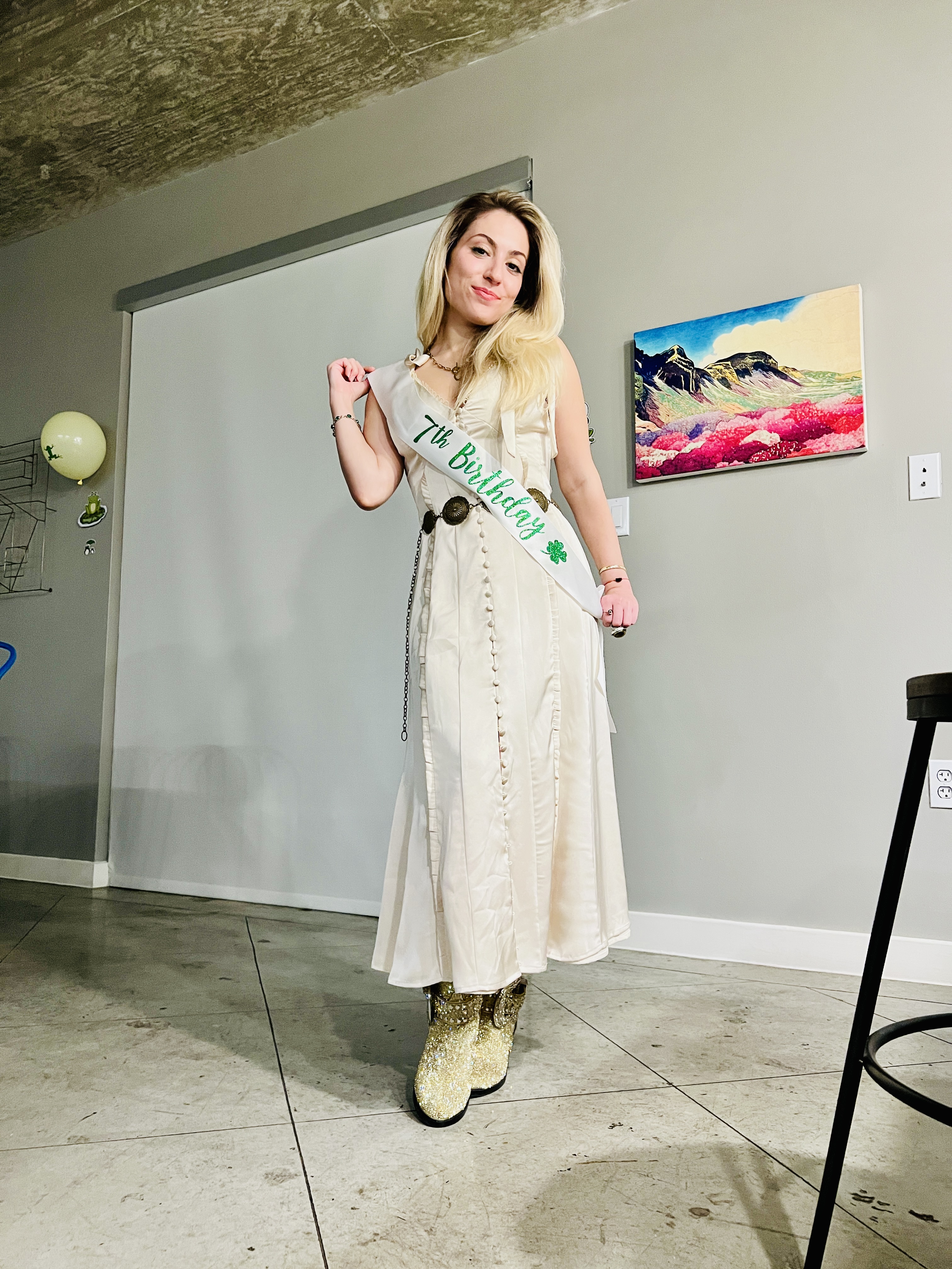 Then it was time to get ready for my birthday dinner 🥳. Let’s hear a little commotion for my dress from Altar’d State (and boots from Dolls Kill).